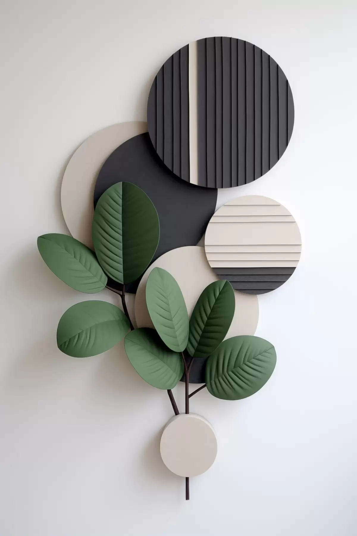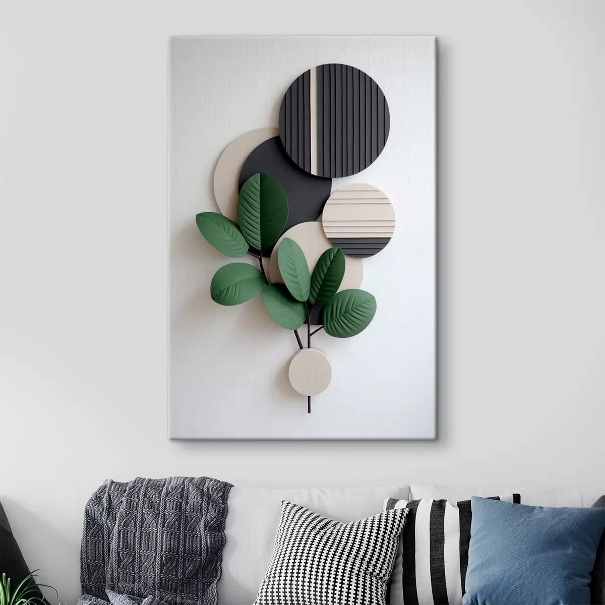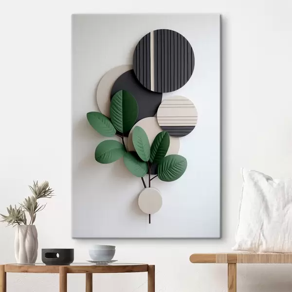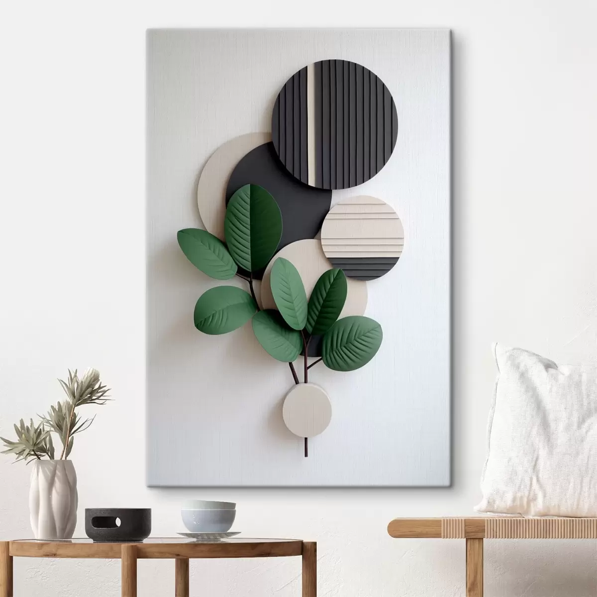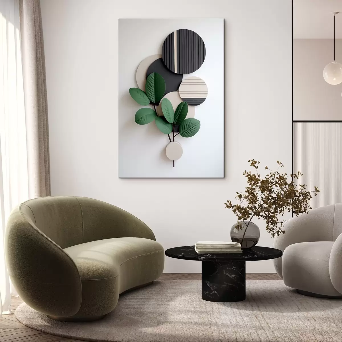 Paveikslas Žali lapai su apvaliais tekstūriniais elementais Nr s48603