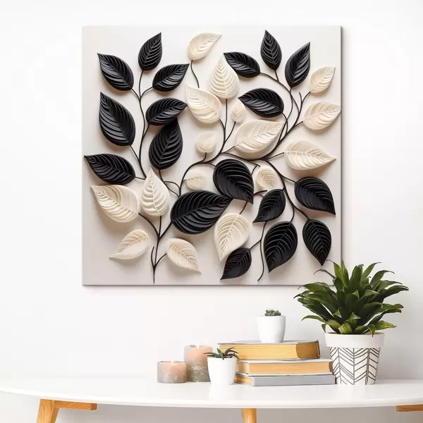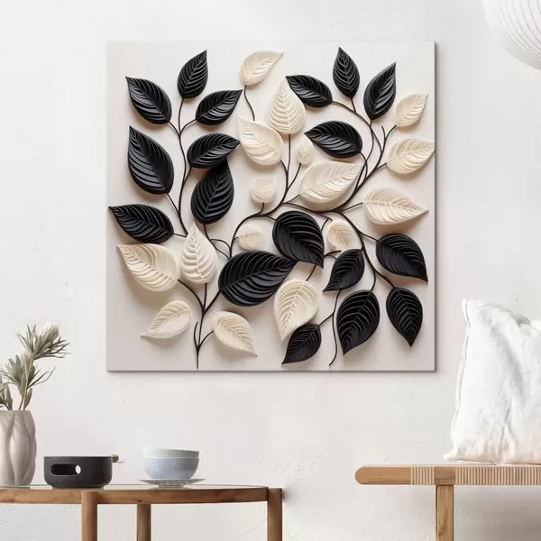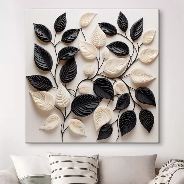 Paveikslas Juodų ir šviesių lapų kompozicija ant šakų Nr s48606