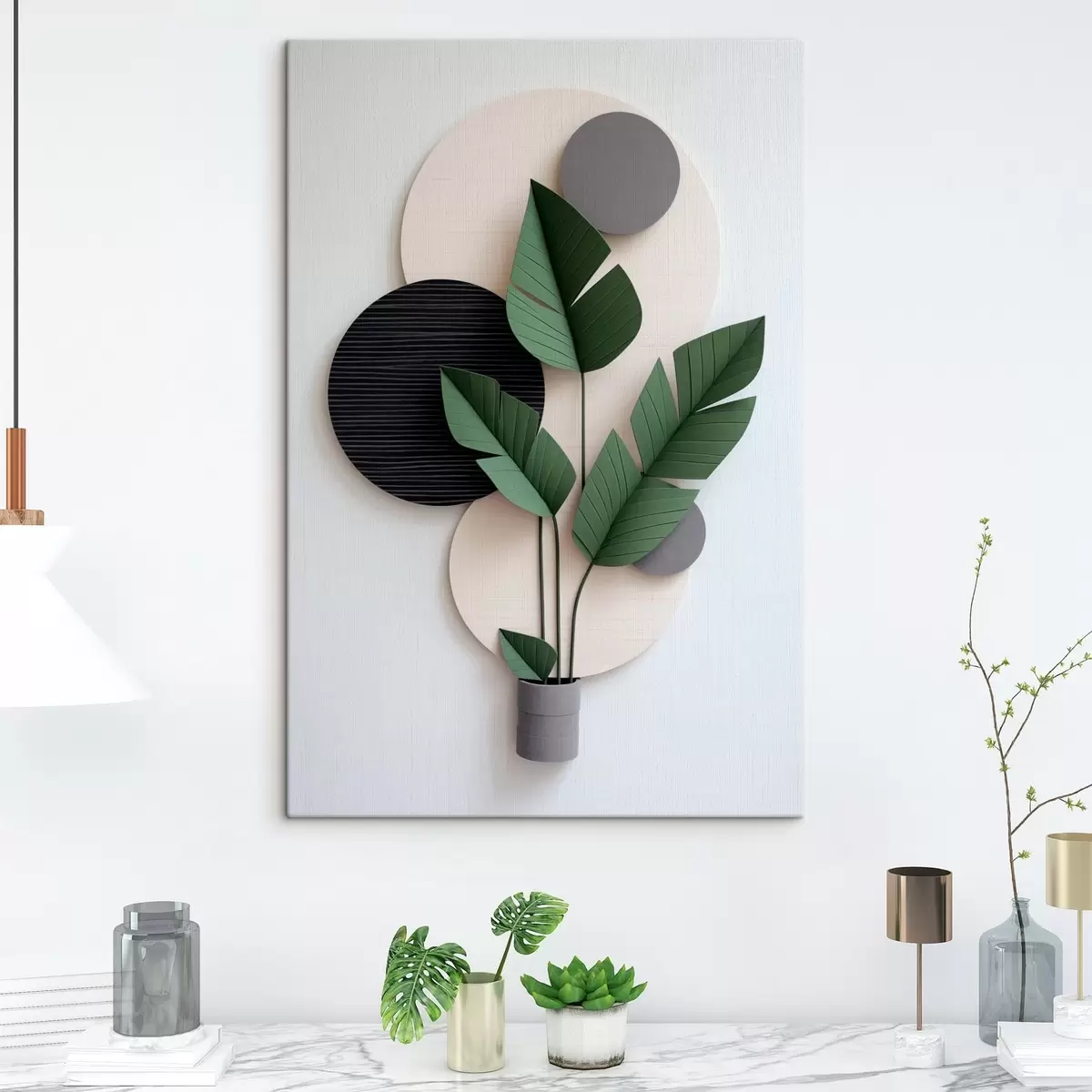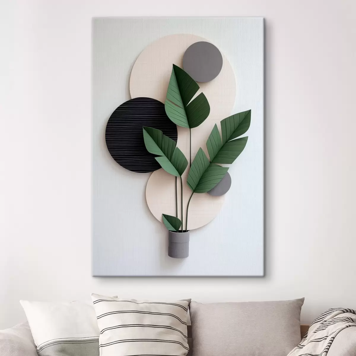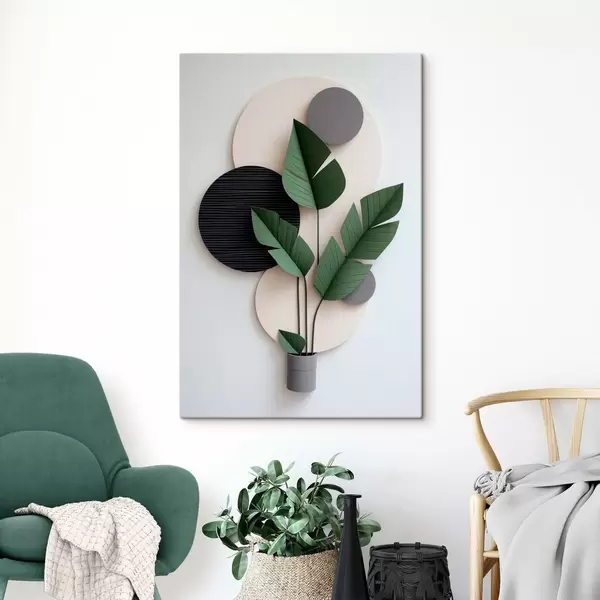 Paveikslas Geometriniai apskritimai ir žali lapai minimalistiniame makete Nr s48607