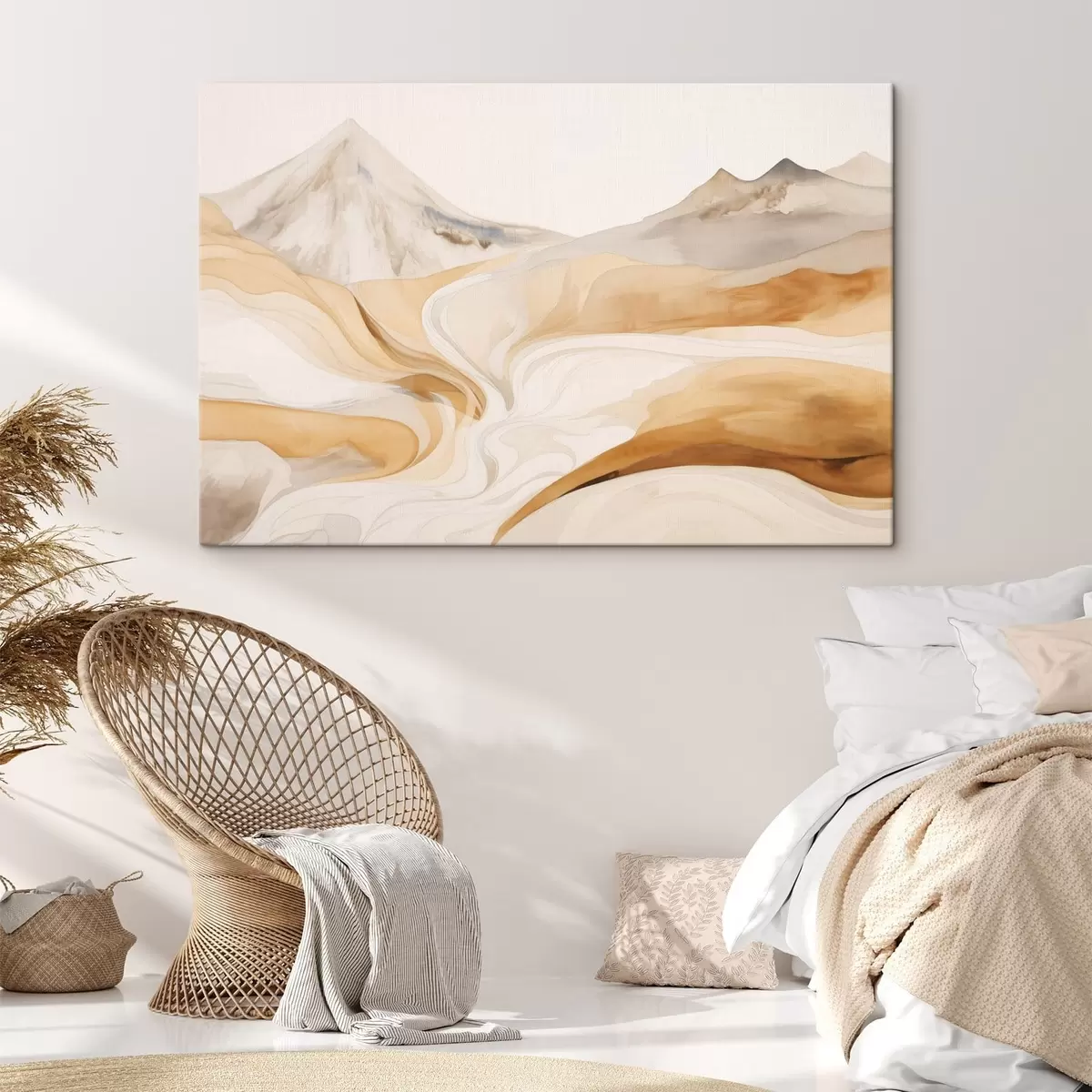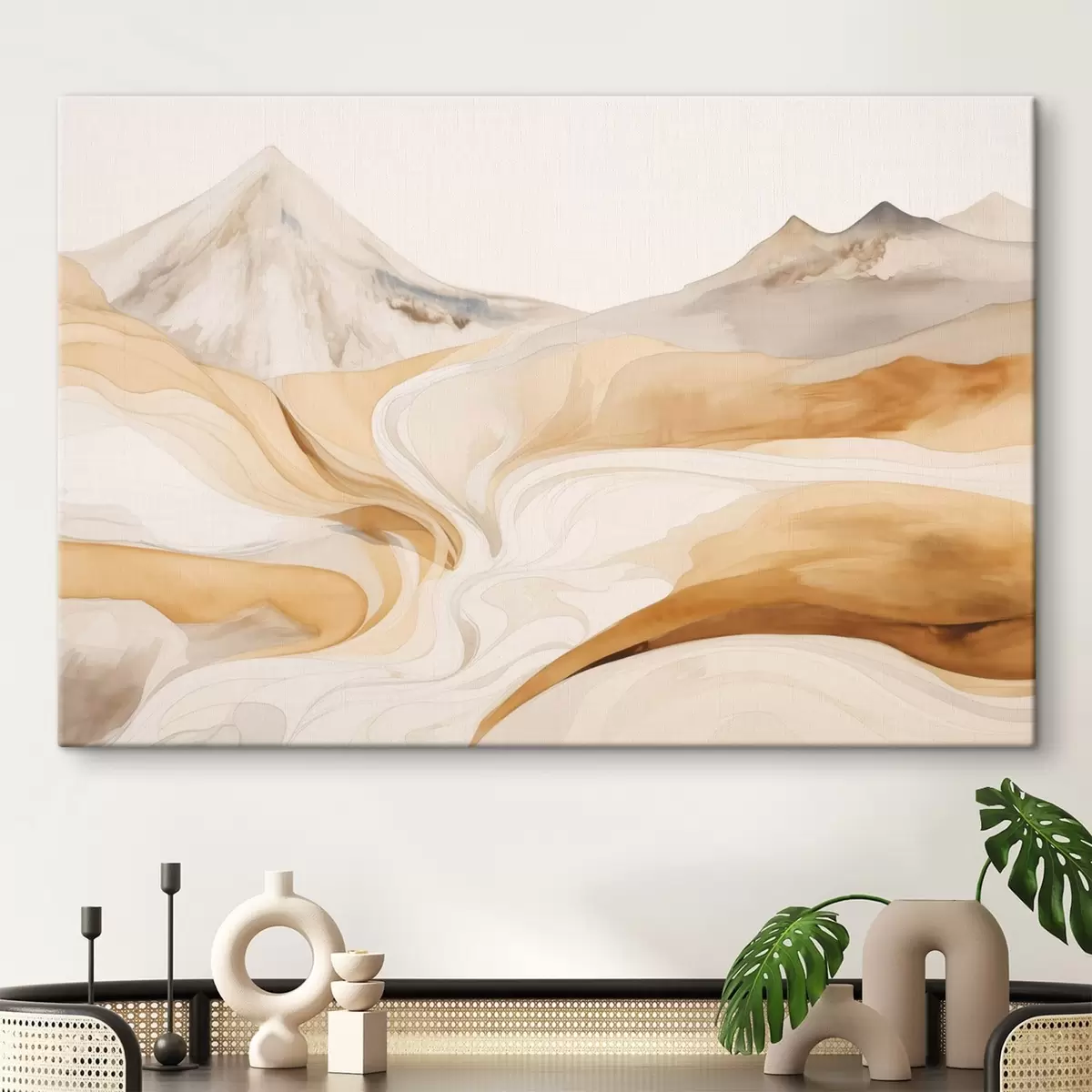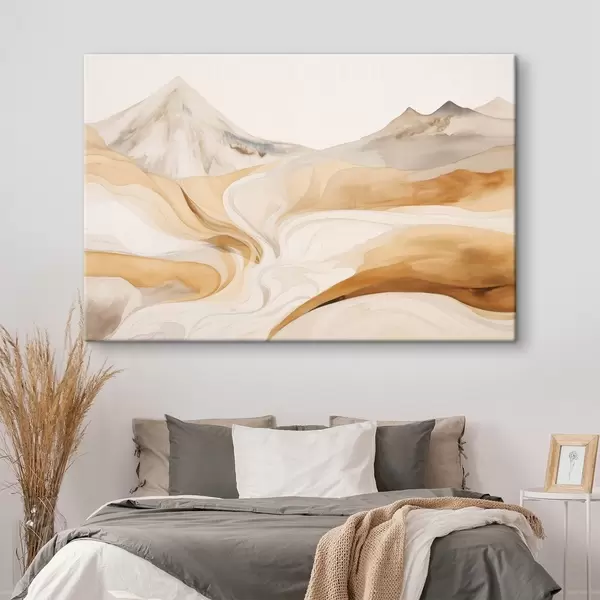 Paveikslas Stilizuotas peizažas su kalnais ir banguojančiomis linijomis Nr s48626