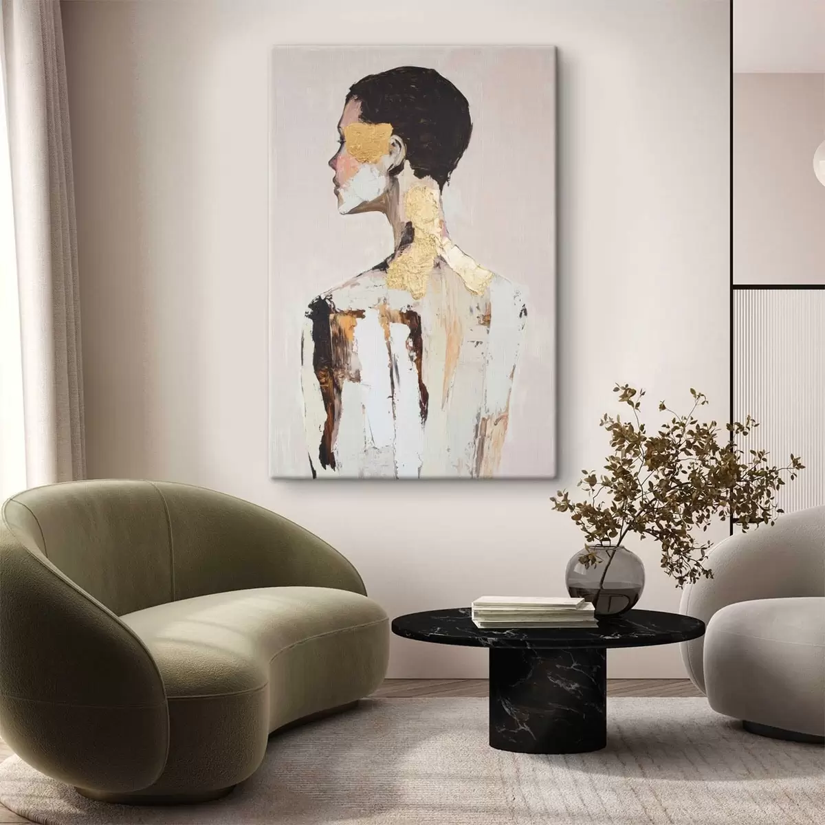 Paveikslą galima pakabinti iš karto jį gavus. Paveikslas bus ištemptas ant 2 cm pločio medinių neštuvų.