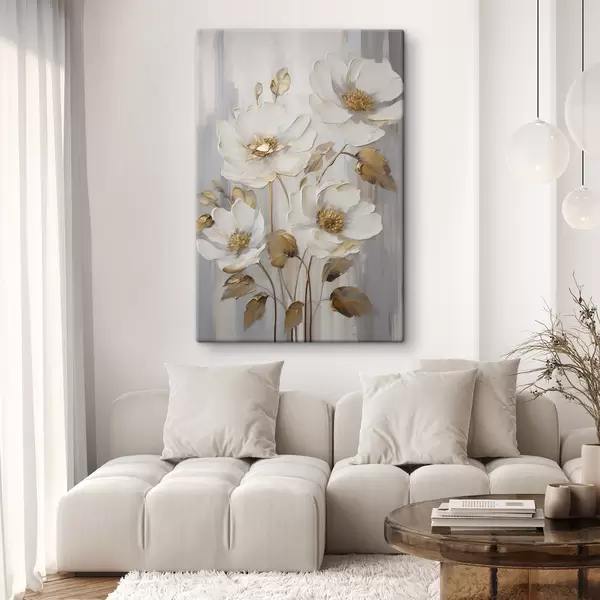 Paveikslas Baltai žiedai su geltonais akcentais ant tekstūruoto fono Nr s48722