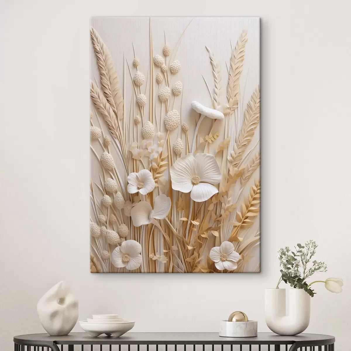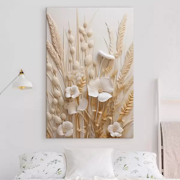 Paveikslas Kreminių aguonų puokštė su džiovintomis kviečių stiebais Nr s48748