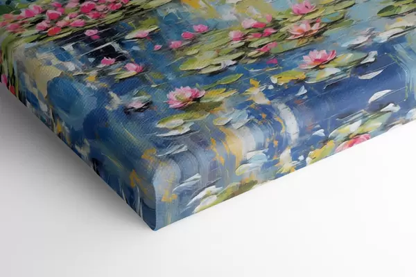 Paveikslas Impresionistinis tiltas per tvenkinį su lelijomis ir gėlėmis Nr s48807