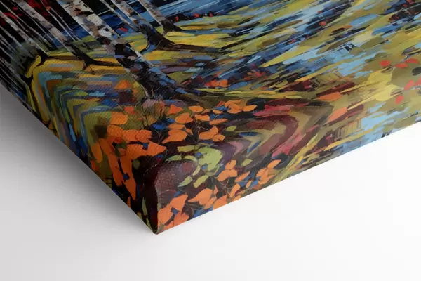 Paveikslas Impresionizmo stiliaus rudens beržynas su upe Nr s48809