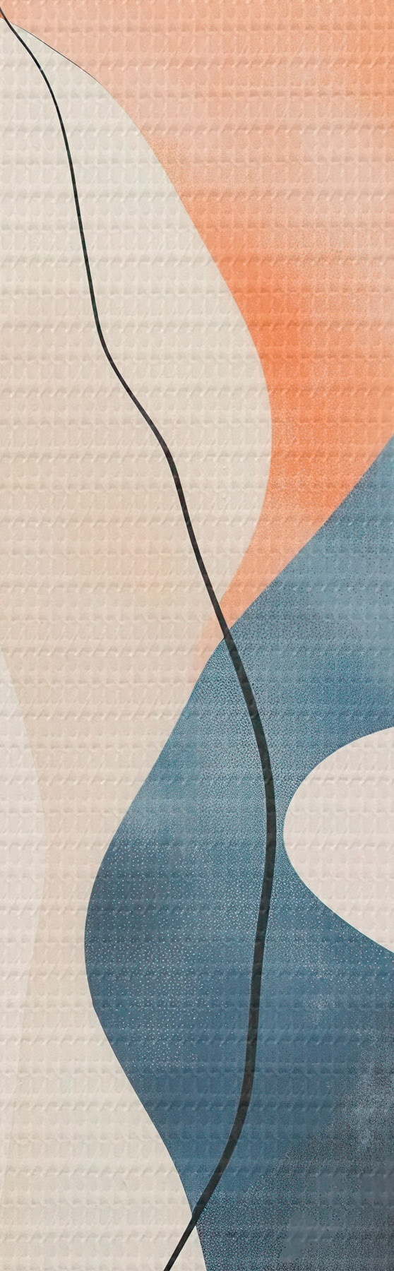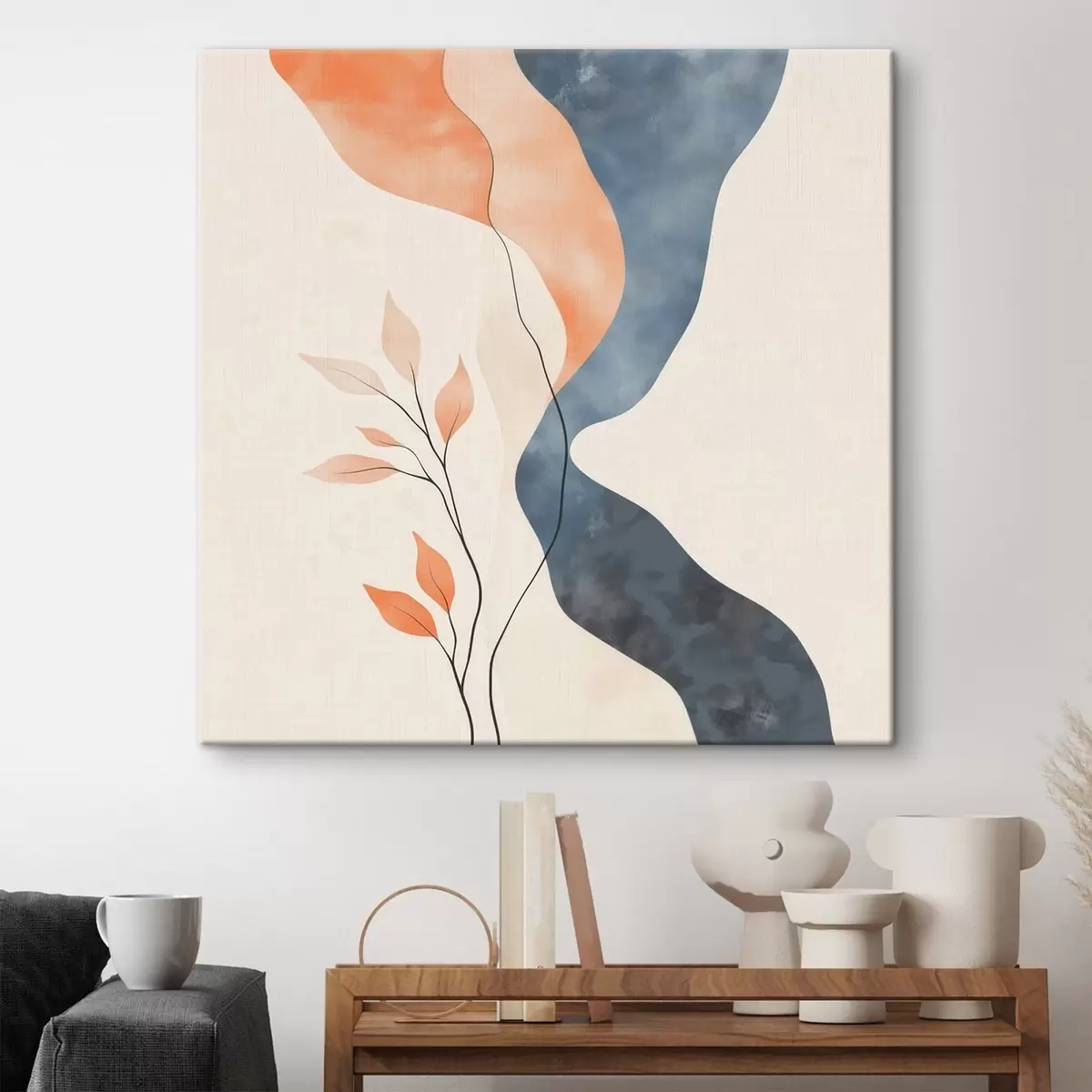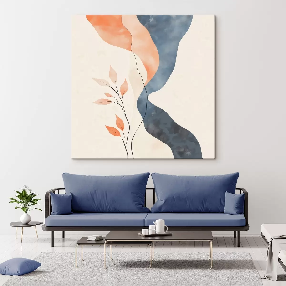 Paveikslas Gėlių kompozicija su banguotomis linijomis mėlynos ir oranžinės spalvų paletėje Nr s48837