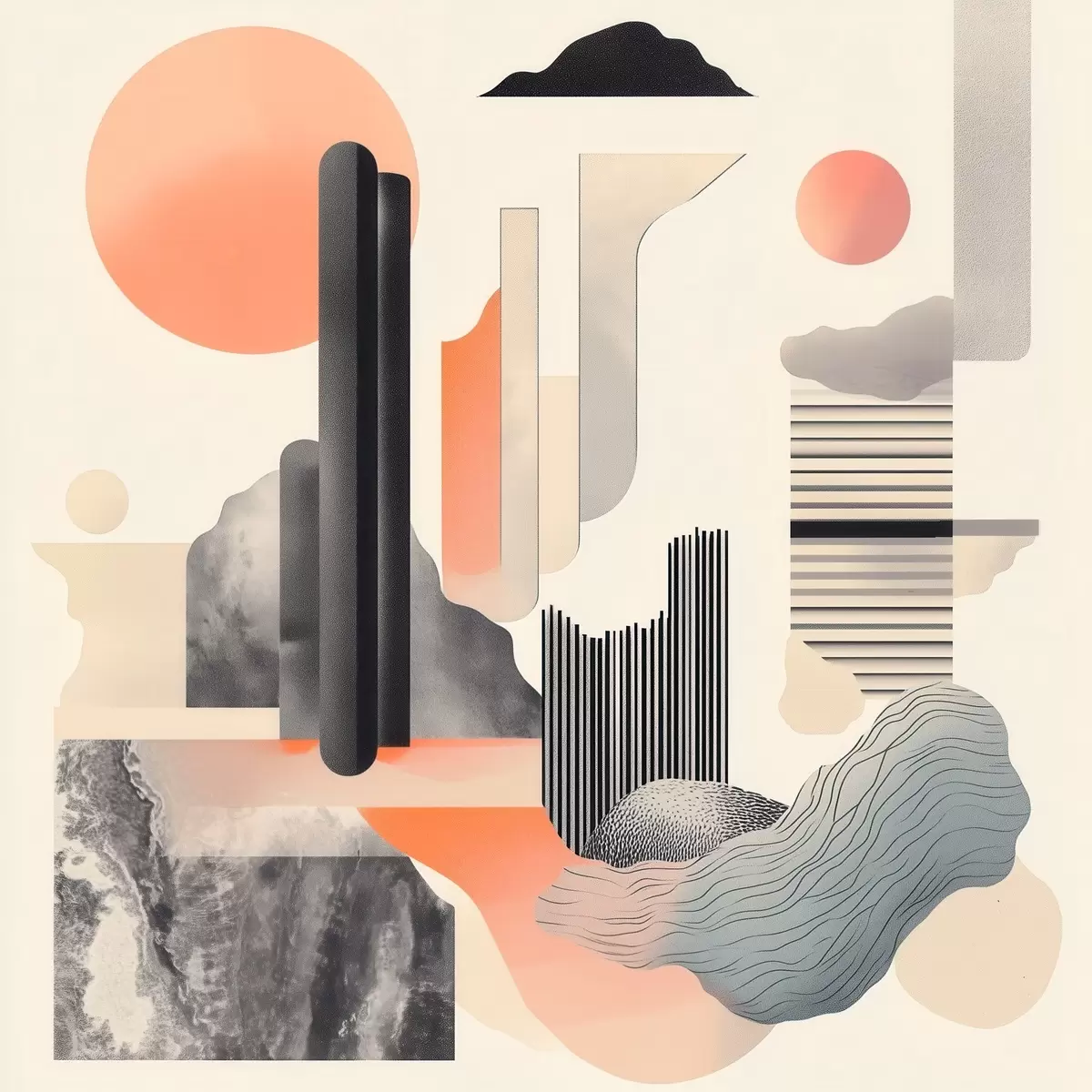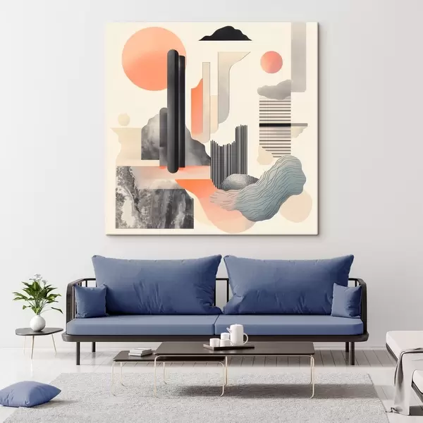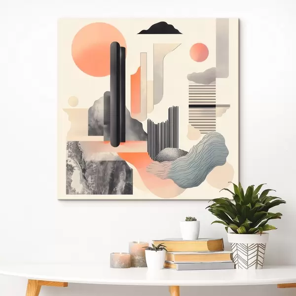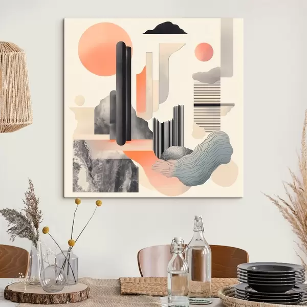 Paveikslas Geometrinė kompozicija persikų ir pilkos spalvų paletėje, atlikta šiuolaikiniu tapybos stiliumi Nr s48841