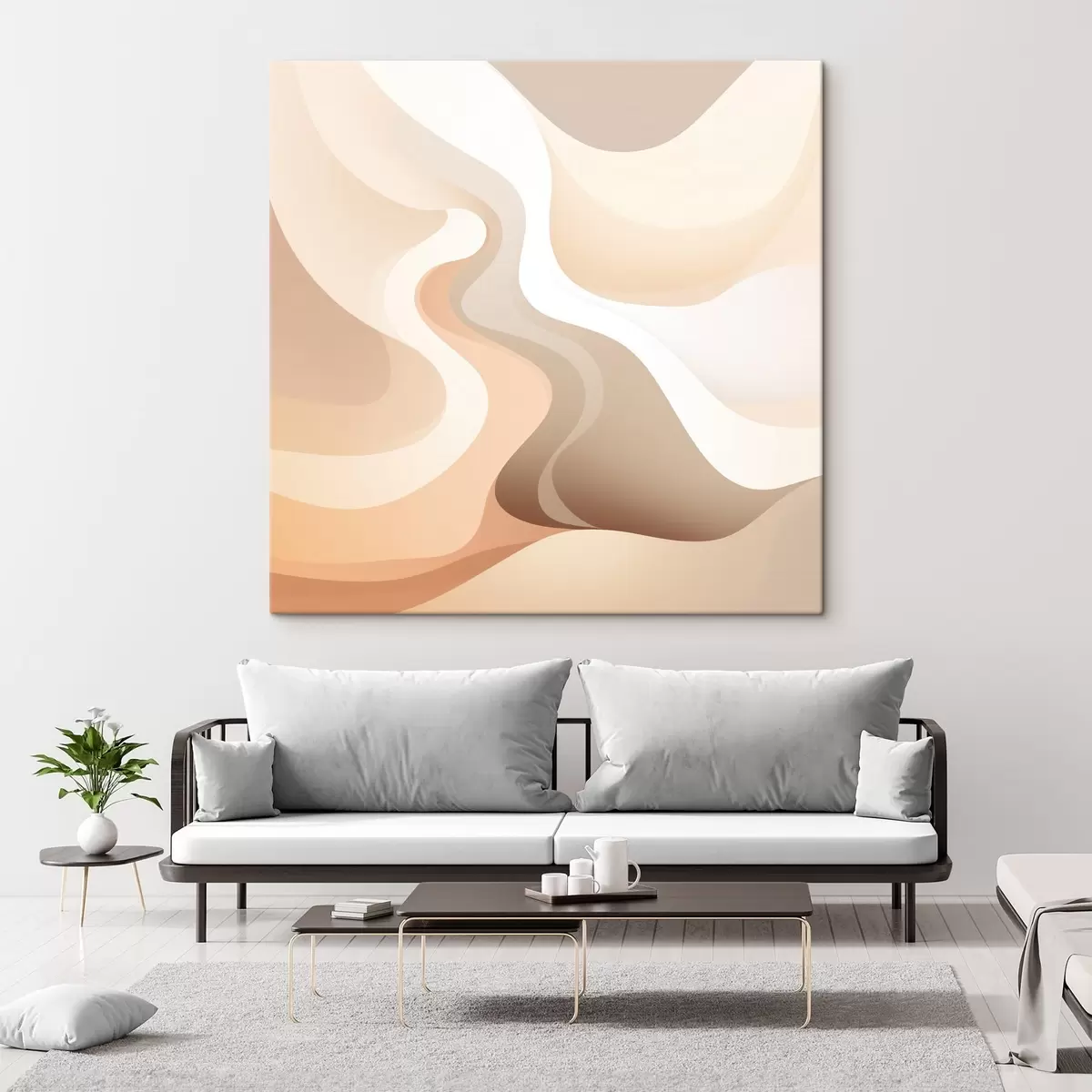 Paveikslas Išlenktų formų ir kreminių atspalvių harmonija šiuolaikinio meno iliustracijų stiliumi Nr s48846