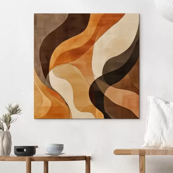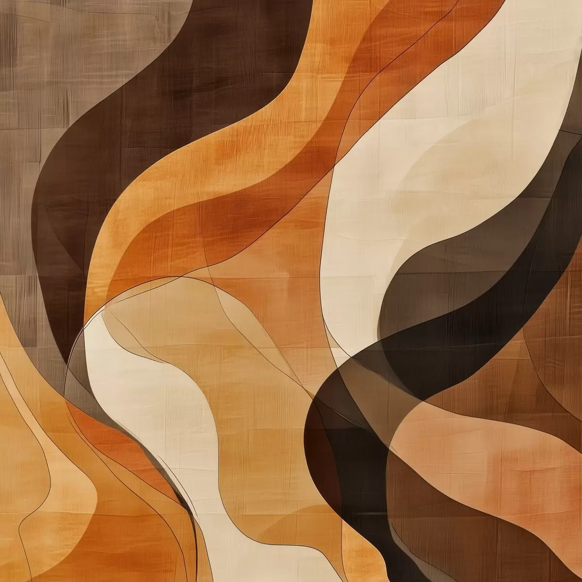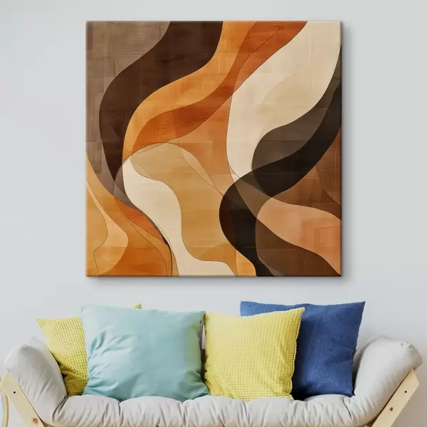 Paveikslas Abstrakti kompozicija su dinamiškomis banguotomis linijomis terakotos rudos spalvų paletėje Nr s48851