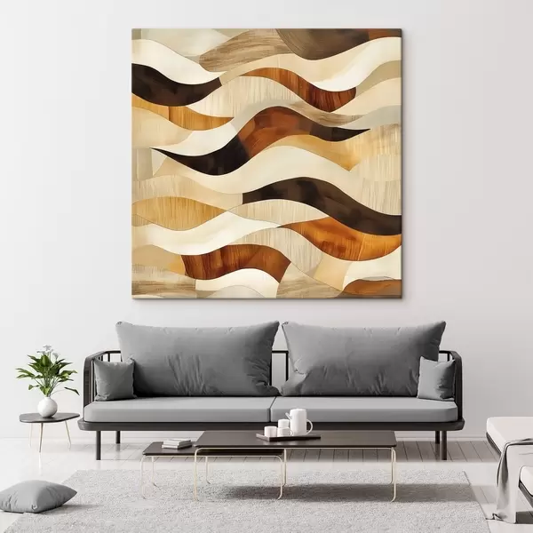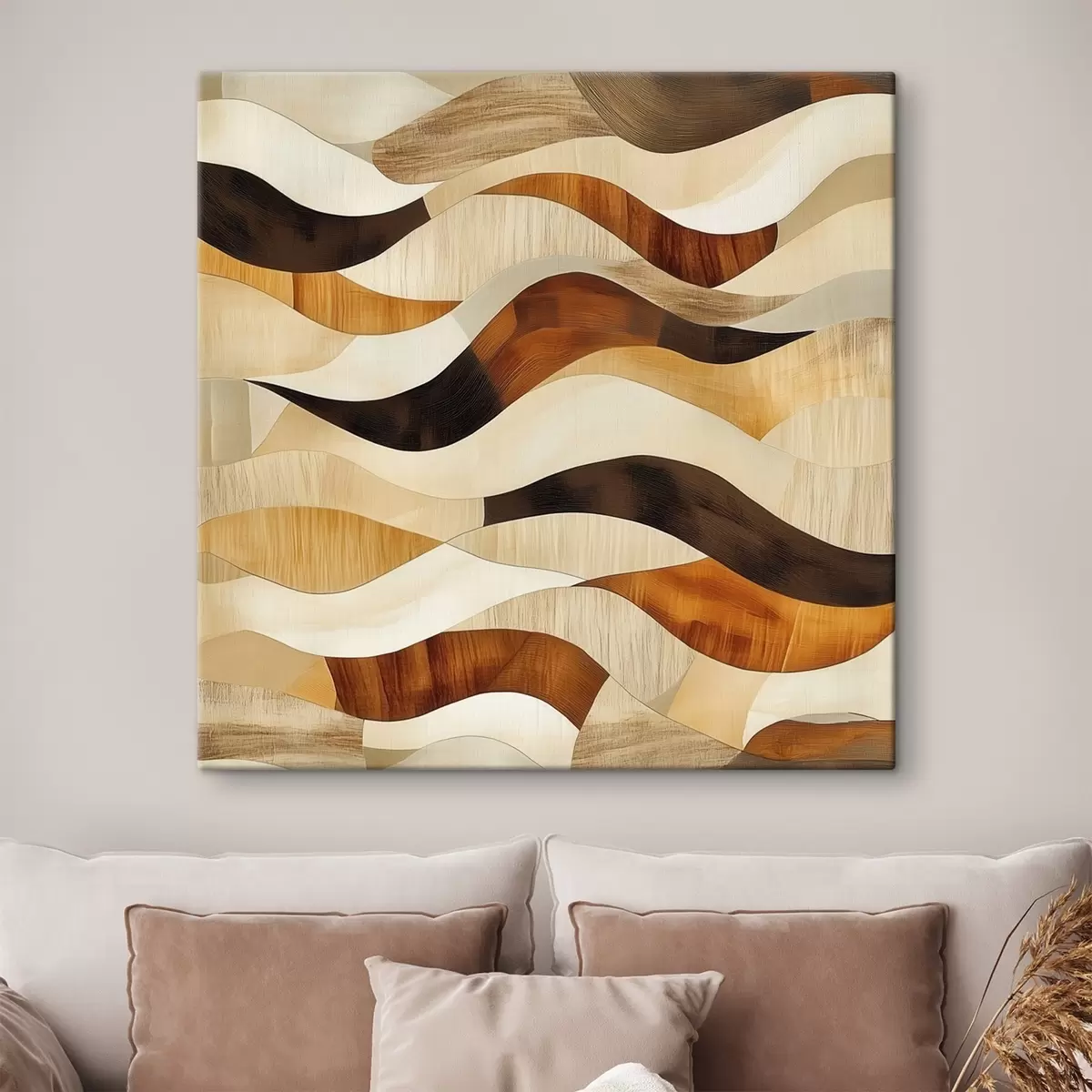 Paveikslas Organiškų linijų ir natūralių medžio atspalvių estetika meniško plakato stiliumi Nr s48852