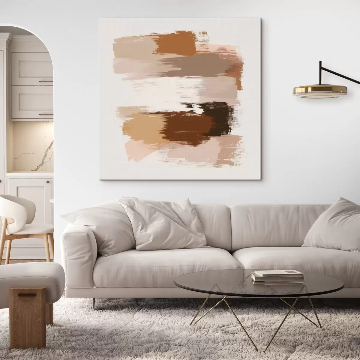 Paveikslas Minimalistinis vaizdas su horizontaliais potėpiais kavos ir terakotos atspalviais Nr s48858