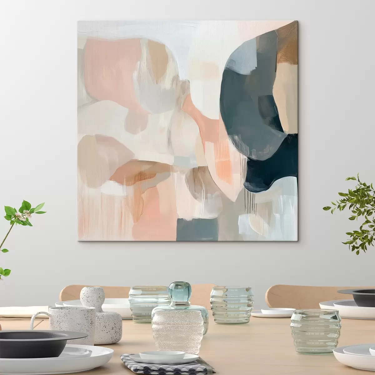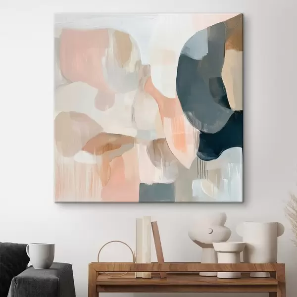 Paveikslas Abstrakčioji kompozicija pastelinėmis ir tamsiai mėlynomis spalvomis, atlikta šiuolaikinio tapybos stiliaus Nr s48860