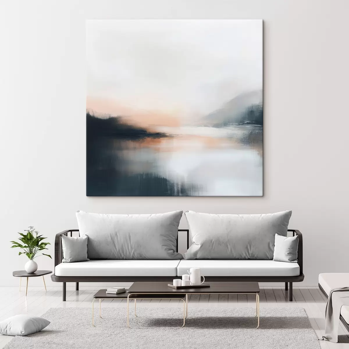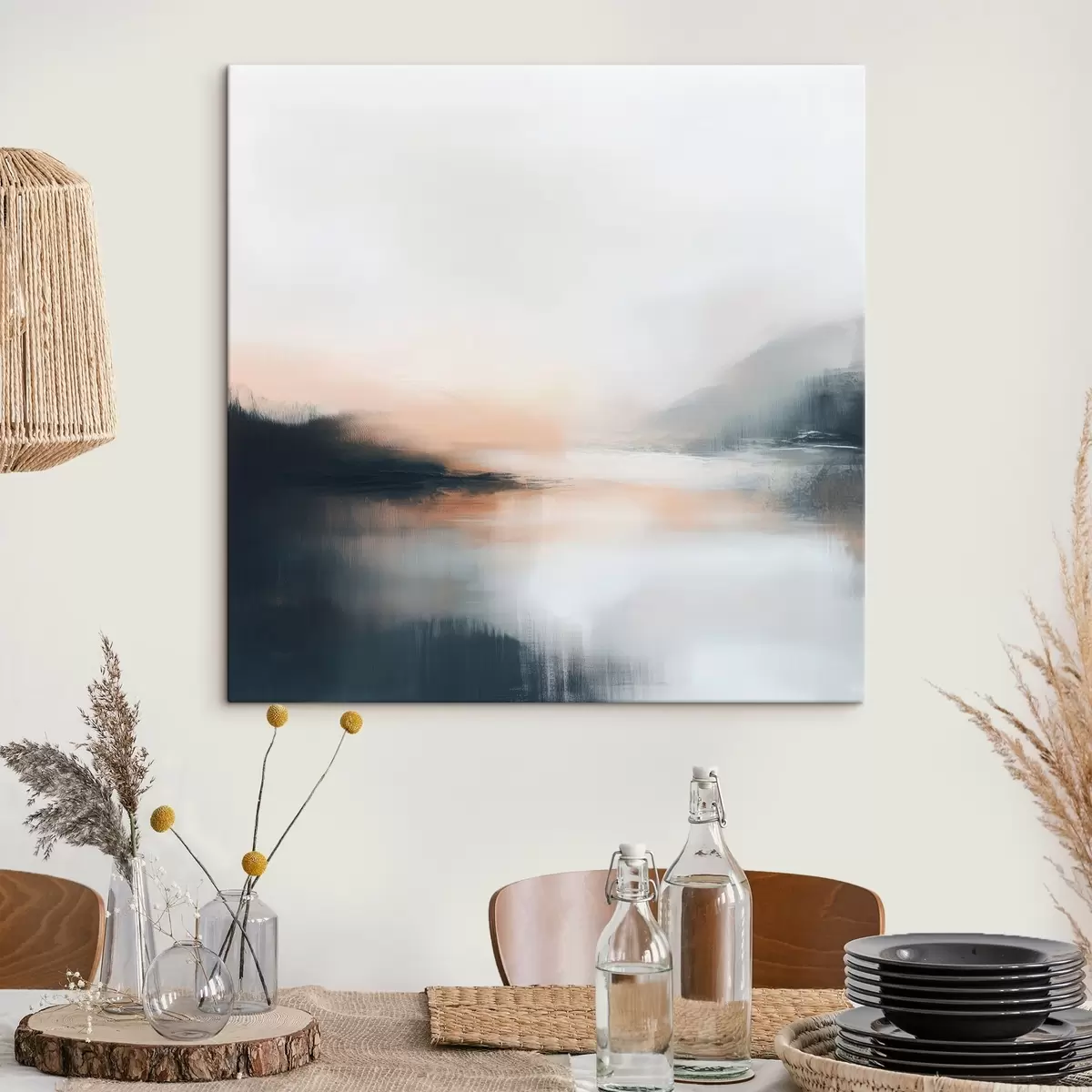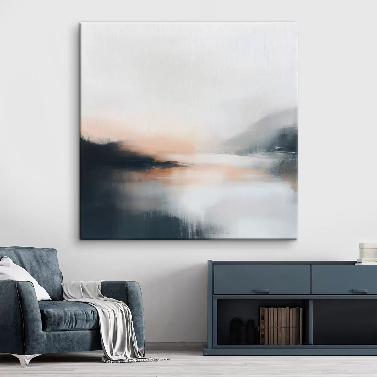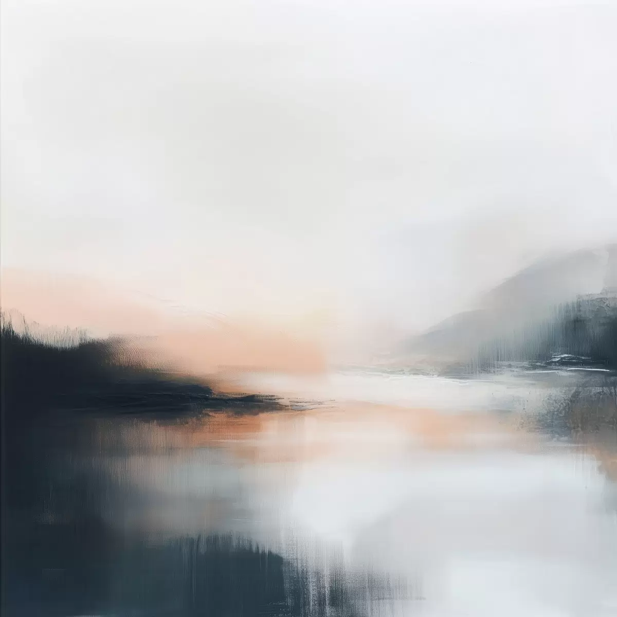 Paveikslas Abstraktus rūko apgaubtas peizažas šiltų smėlio ir koralų atspalvių paletėje Nr s48861