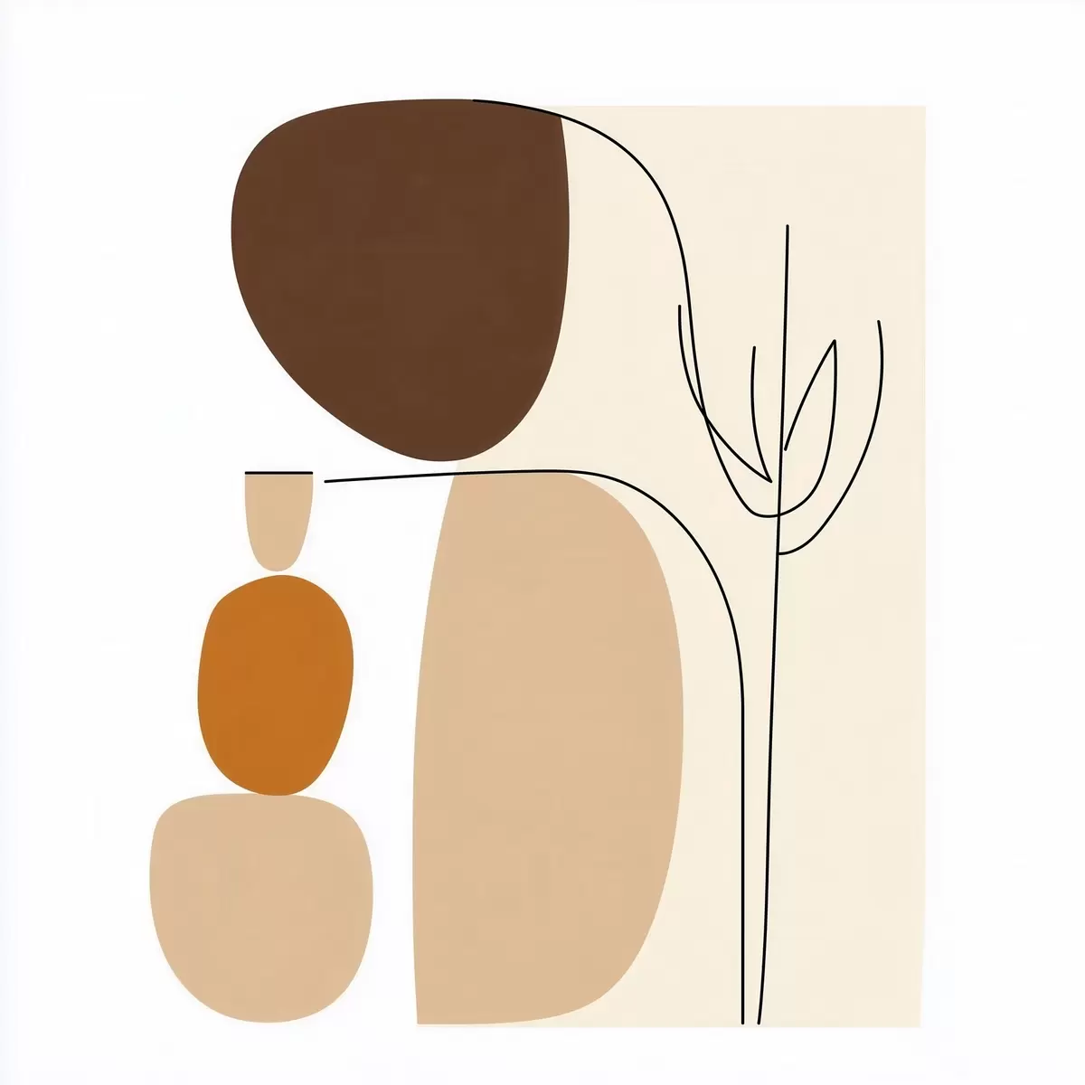 Paveikslas Abstrakti kompozicija su plonais stiebais ir paprastomis formomis minimalistiniu stiliumi Nr s48871