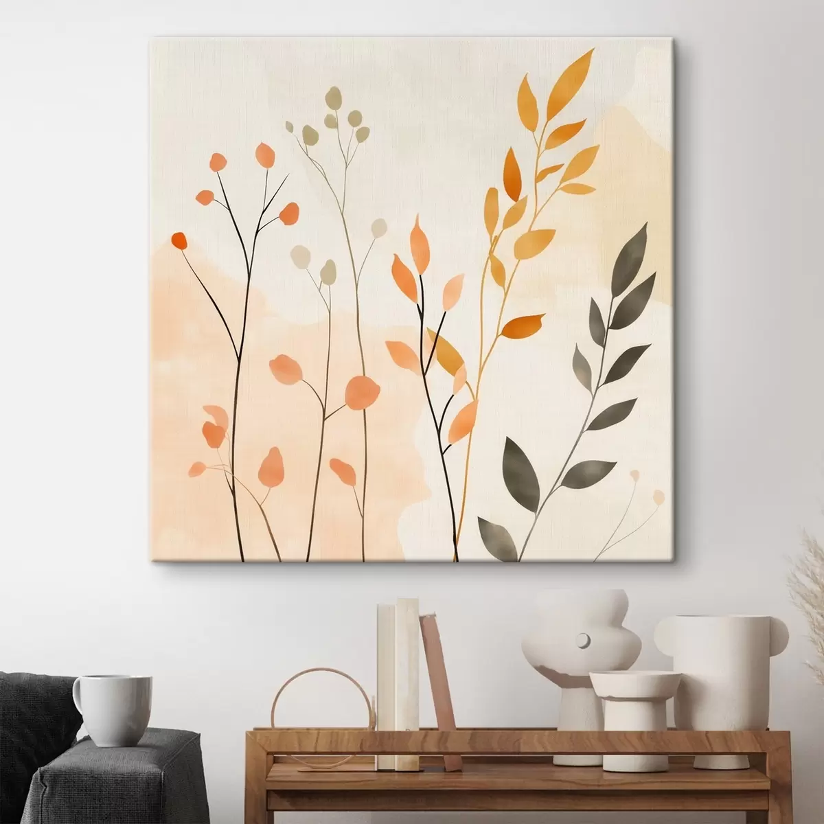Paveikslas Pastelinė kompozicija su subtiliais augalų motyvais, atlikta šiuolaikiniu tapybos stiliumi Nr s48873