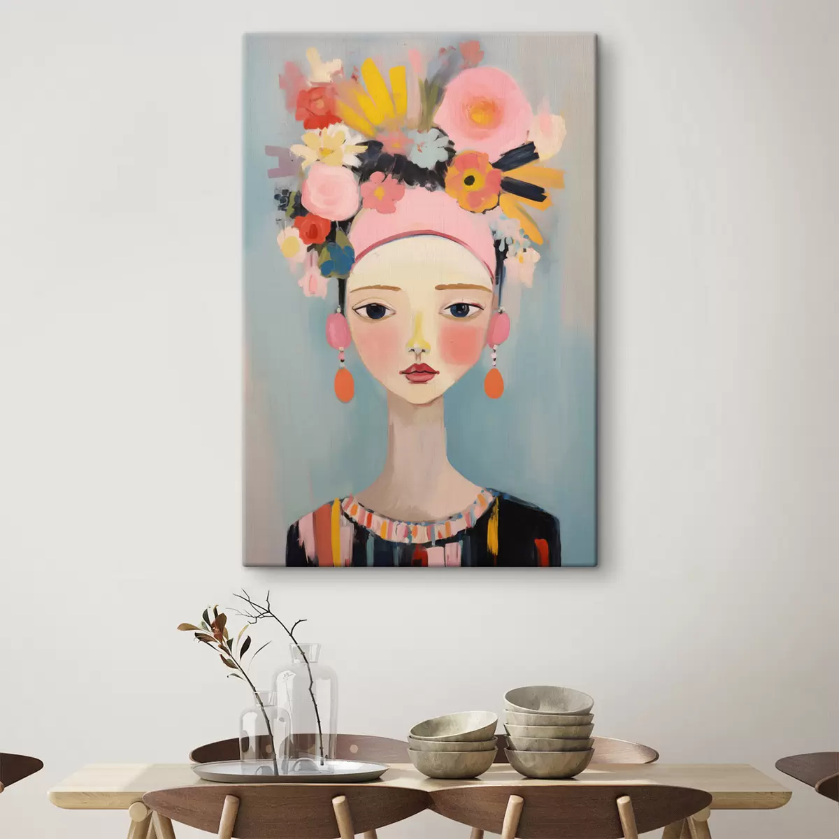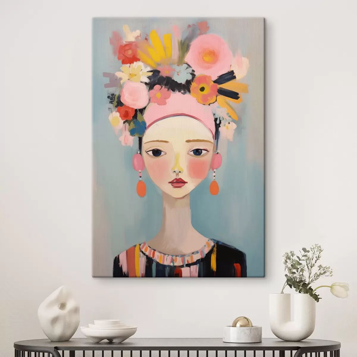 Paveikslas Moteries portretas su gėlėmis plaukuose, abstraktus stilius Nr s48936