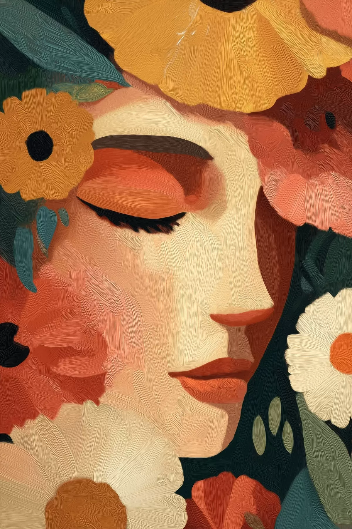 Paveikslas Moters portretas su gėlėmis Nr s48960