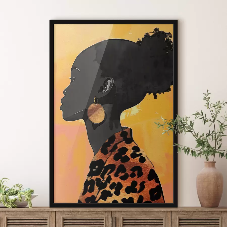 Abstraktus raštas su sodriais žaliais atspalviais ir šiltu kontrastingu elementu