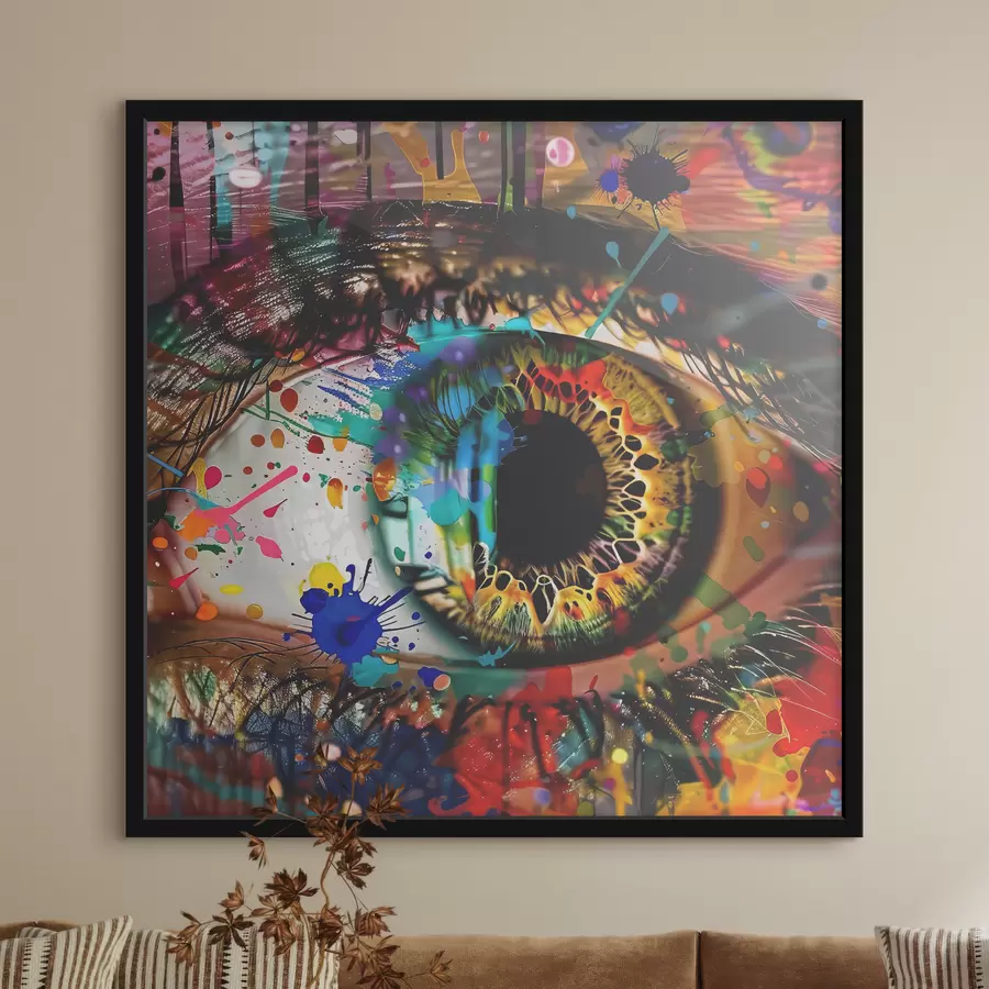 Ryškių dažų gabalėliai su įtrūkimais, kvadratėliais, kubizmo tapyba