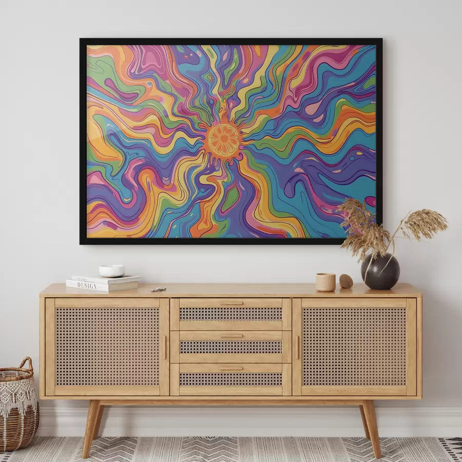 Juodai baltas Apollo su spalvotomis dėmėmis grafinio stiliaus