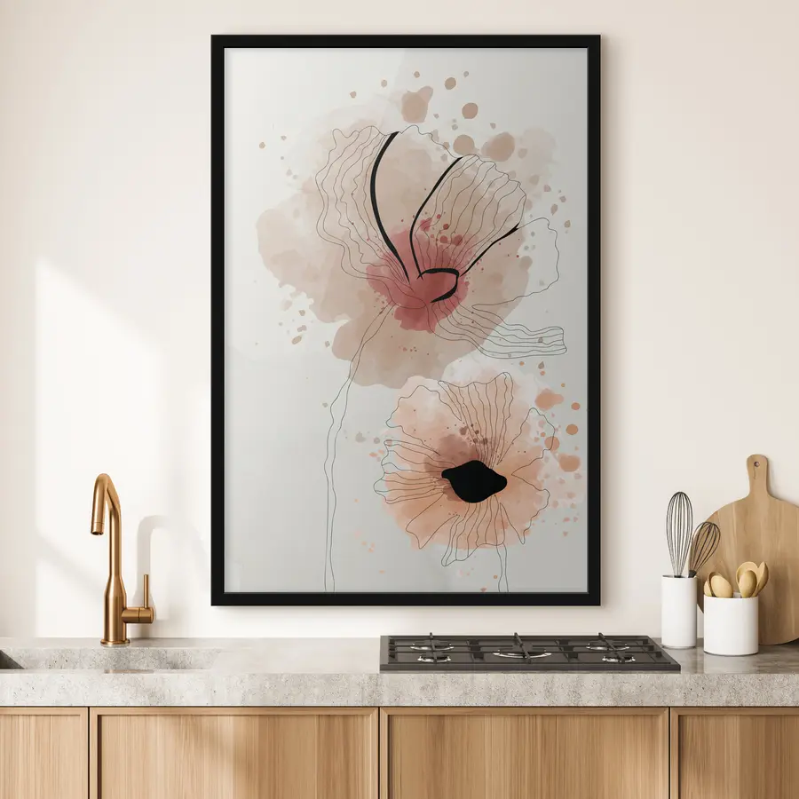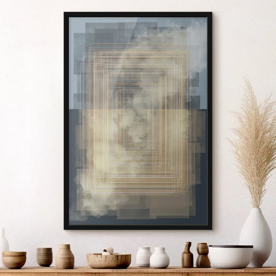 Geometrinės rudų, smėlio ir juodų atspalvių figūros, sukuriančios abstrakčią, minimalistinę kompoziciją