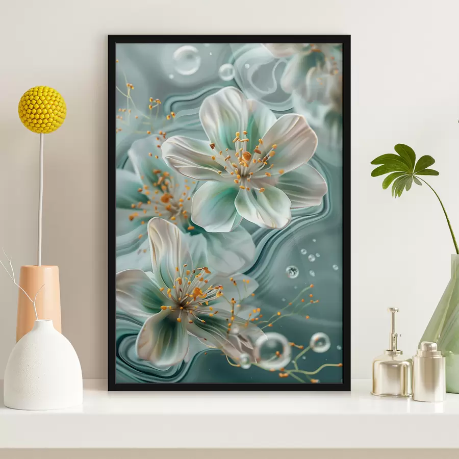 Subtilūs, pastelinių spalvų gėlių žiedlapiai su tekančiomis formomis ir tekstūromis, sukuriantys abstrakčią gėlių kompoziciją