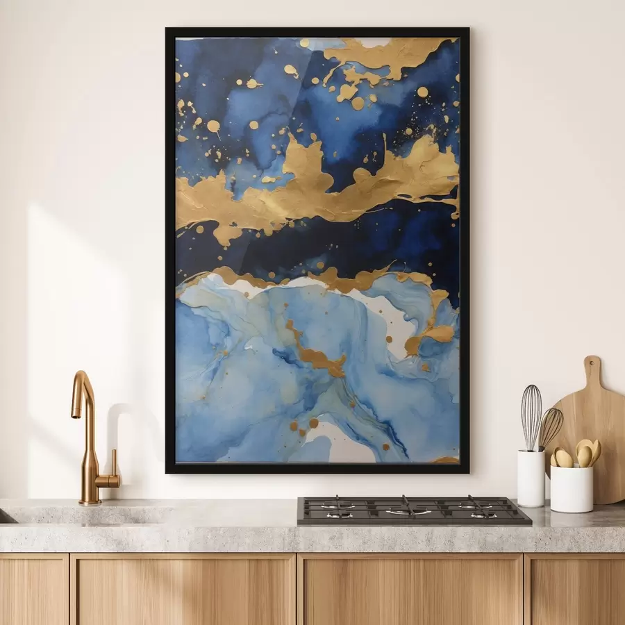 Mėlynų ir oranžinių atspalvių abstrakcija su tekstūros imitacija