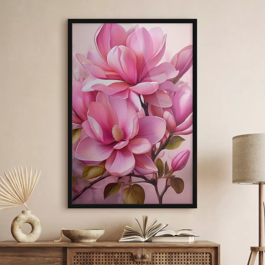 rožinės magnolijos, dideli žiedai, ryškiai rožiniai žiedai
