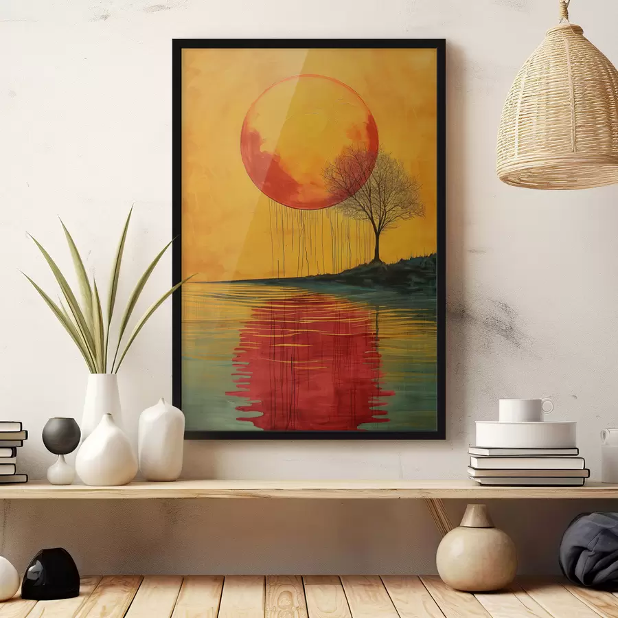 Abstraktus įvairiaspalvis medis ant ežero