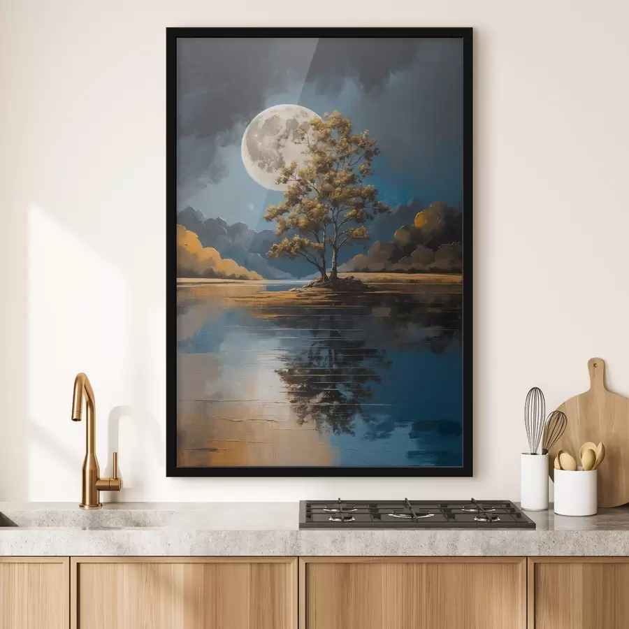 Mėnulio apšviesta ramybė prie vandens