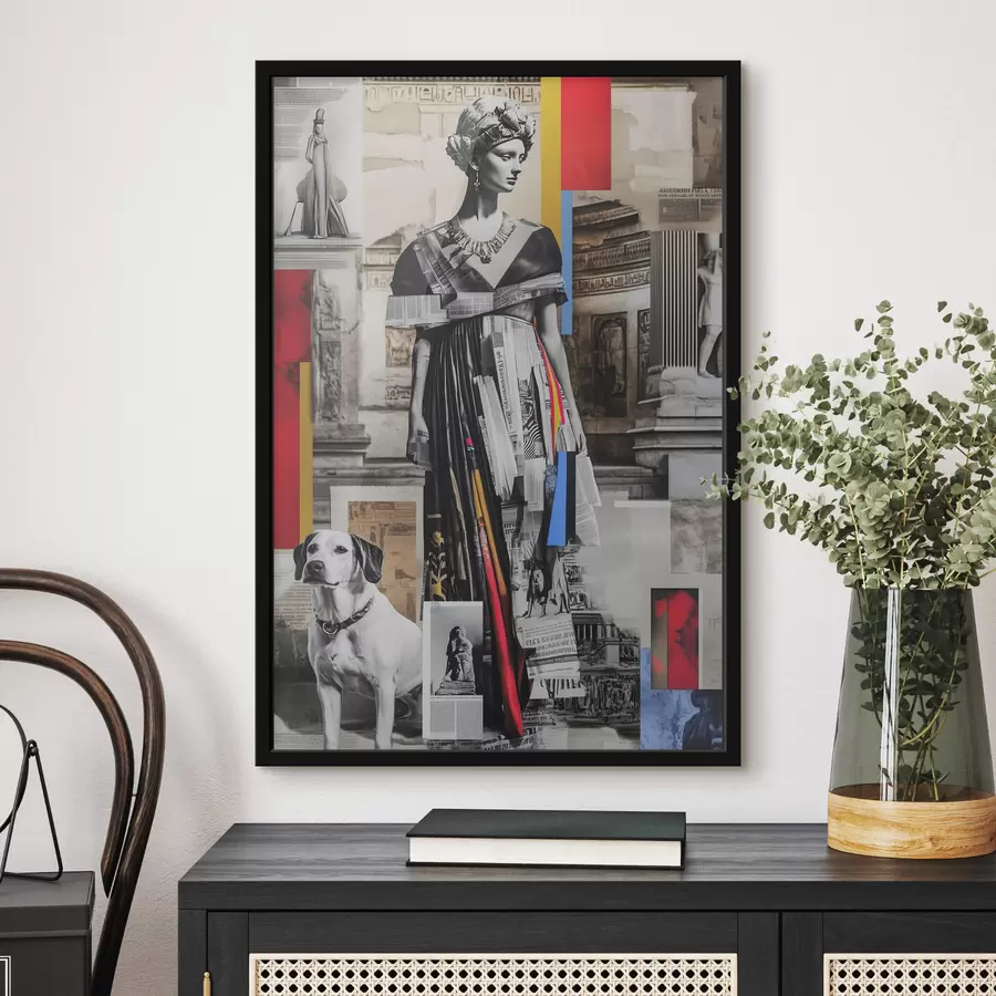 Meninio stiliaus gatvės scena su pastatais ir žmonėmis