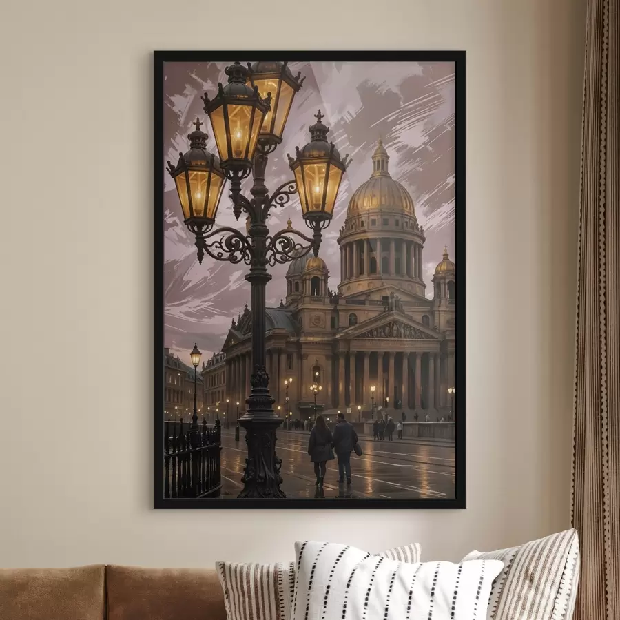 Didinga katedra su dideliu kupolu ir puošnia architektūra, kurią naktį apšviečia gatvės žibintai