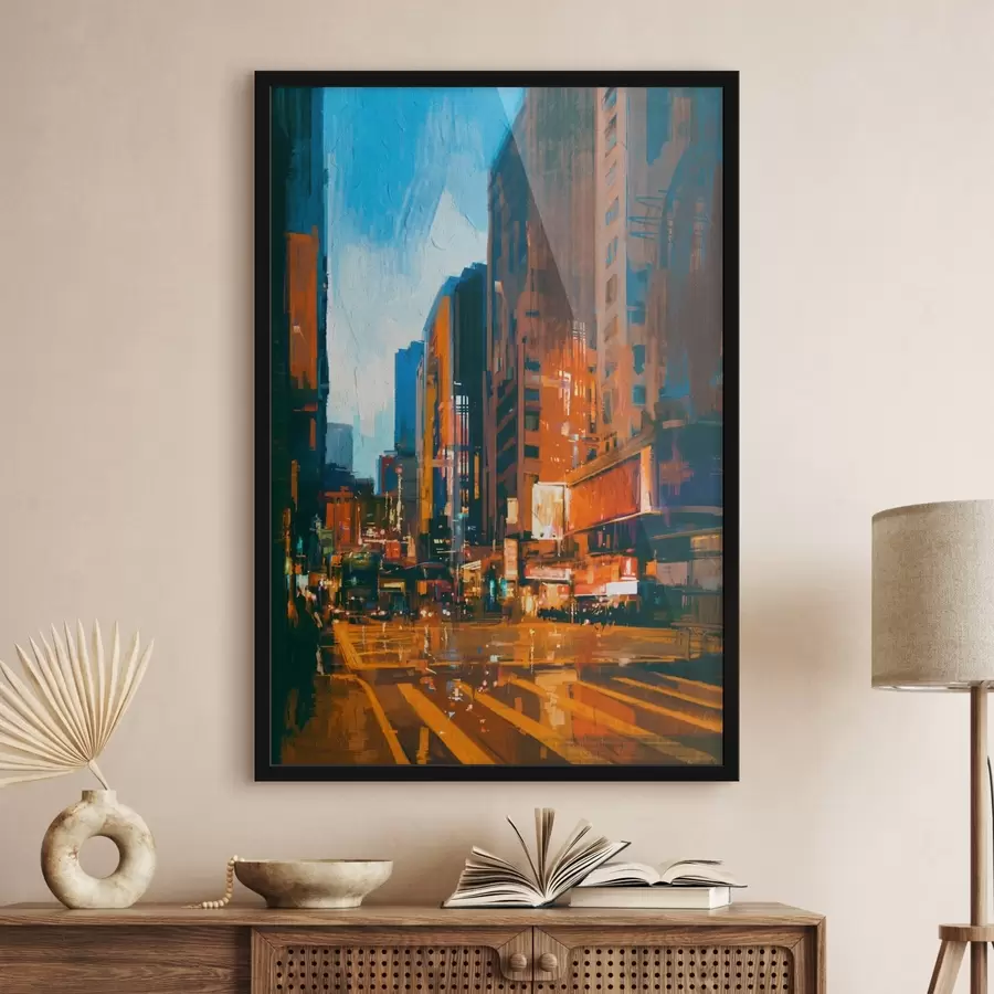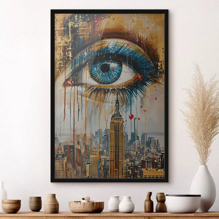 Niujorko vaizdas, pastatų siluetai, akvarelė