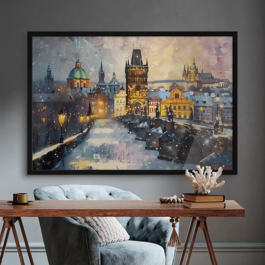Vaizdingas akvarelės paveikslo vaizdas į Didįjį kanalą Venecijoje, Italijoje