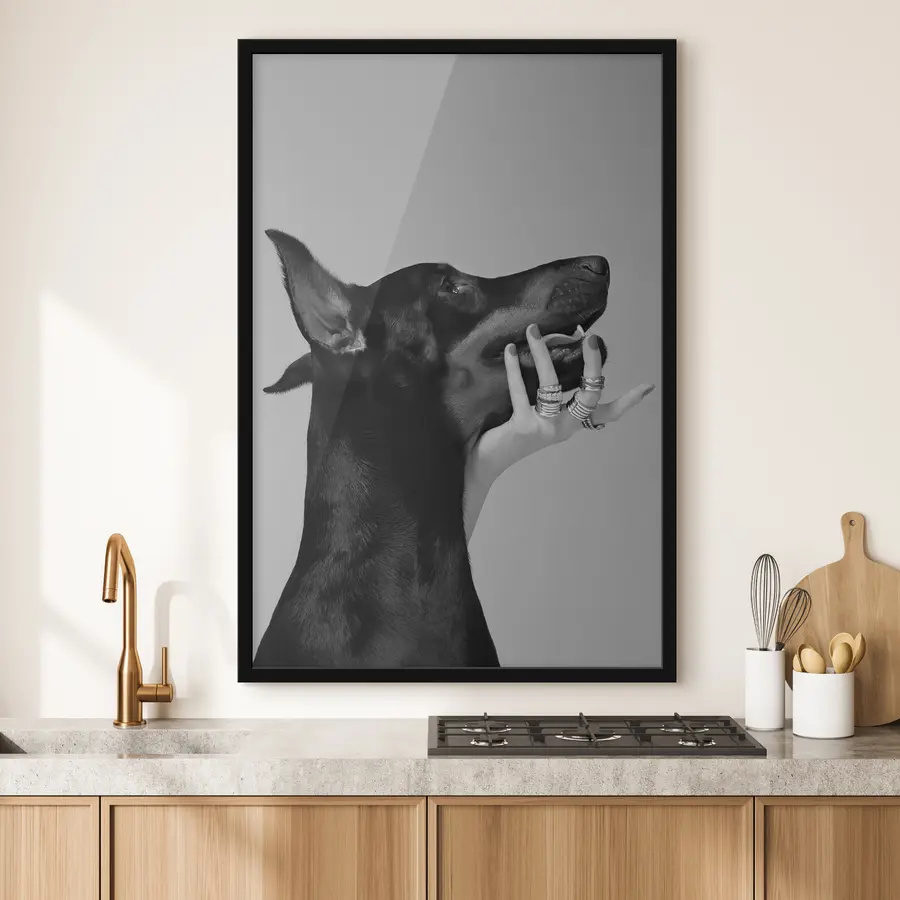 Dobermanas ant fotelio