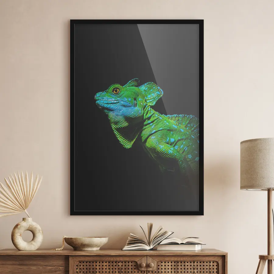 Spalvingas driežas prožektorių šviesoje