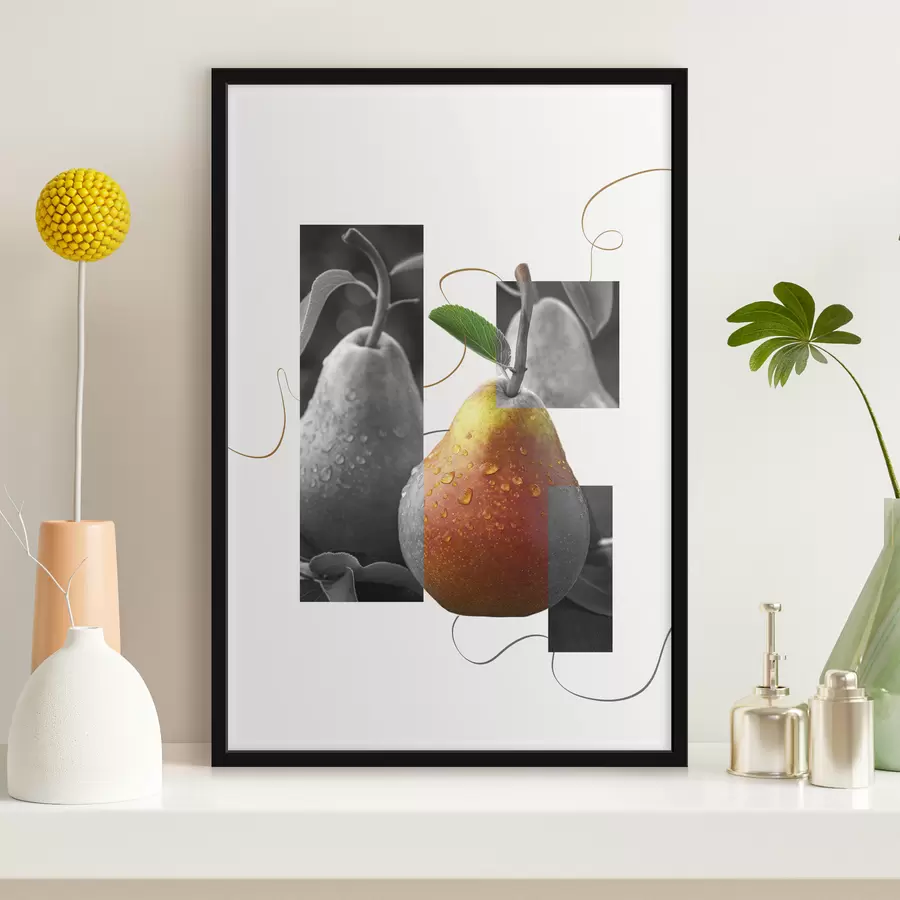 Abstraktus menas su sultingu persiku, fotorealizmu, vasaros vaisiais