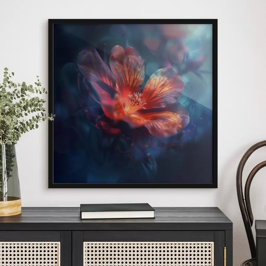 Abstrakti gėlė mėlyname fone