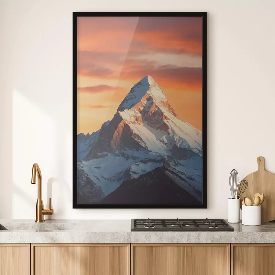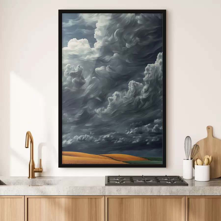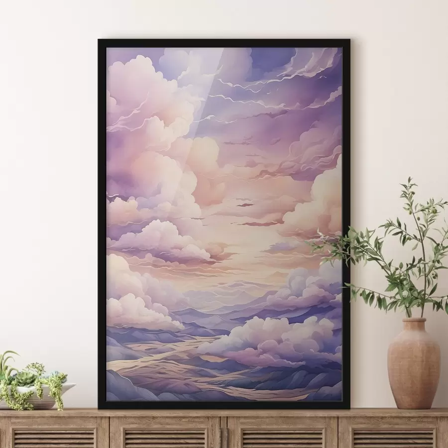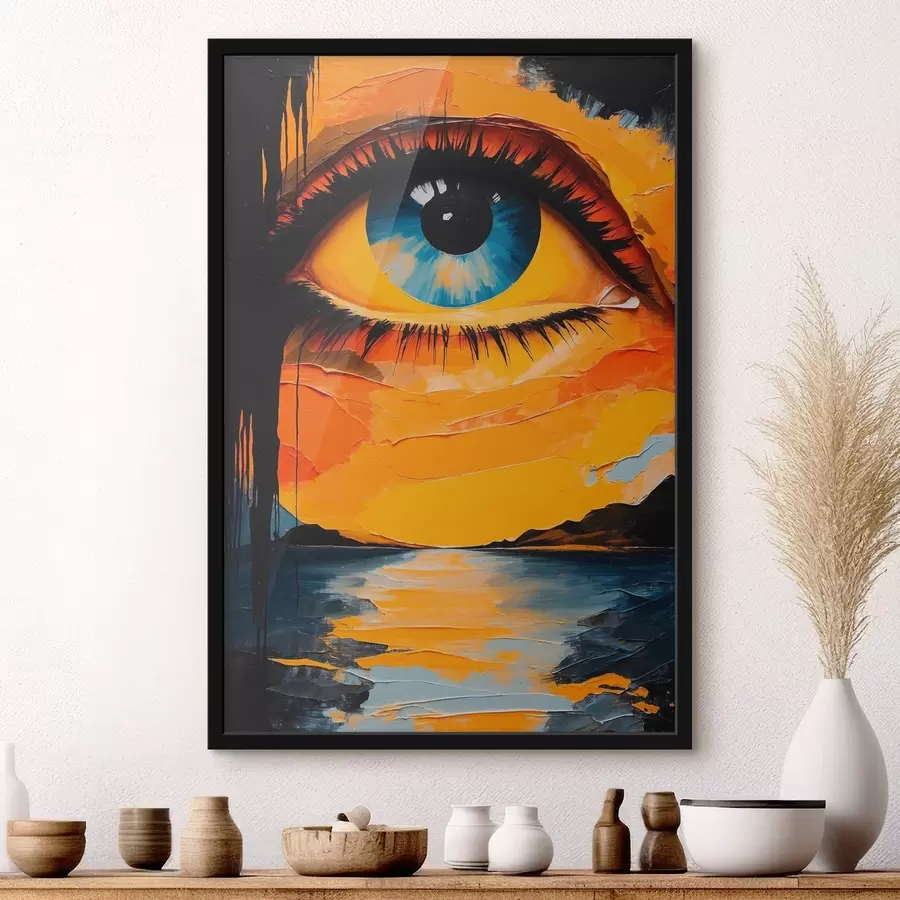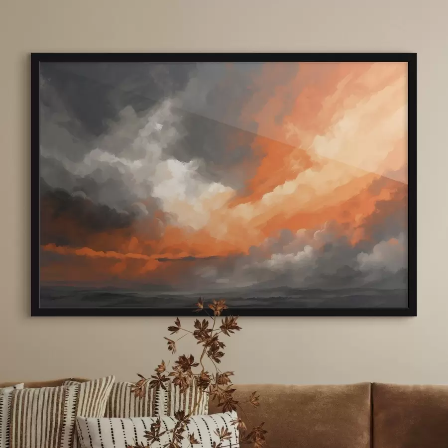 Abstraktus peizažas, saulėlydis, teptuko potėpių imitacija