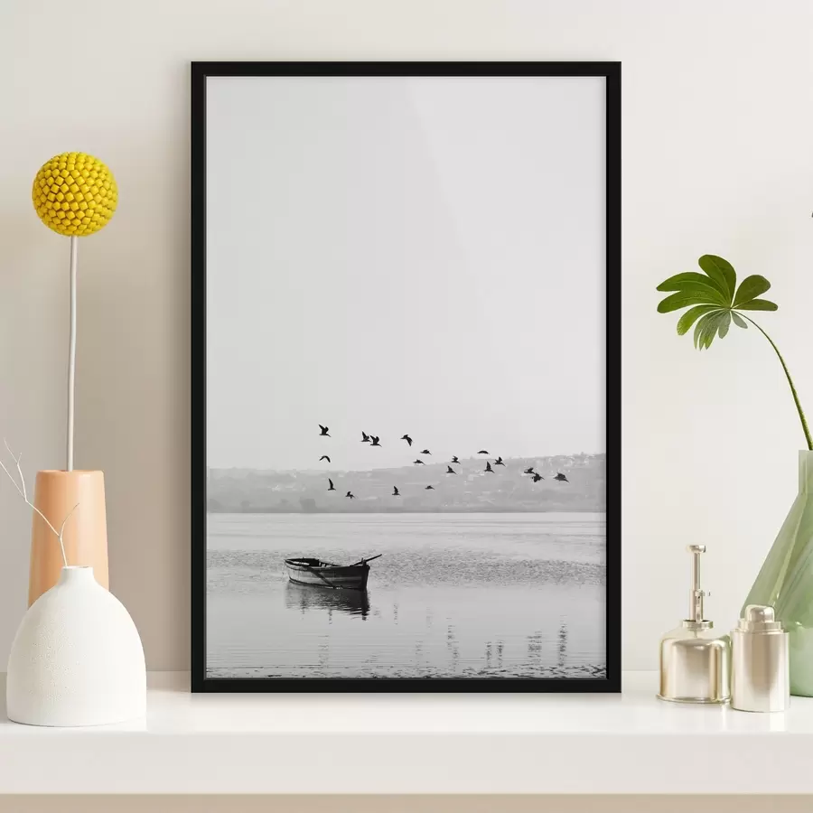 Estetiški pusryčiai prie ežero, akvarelės stilius