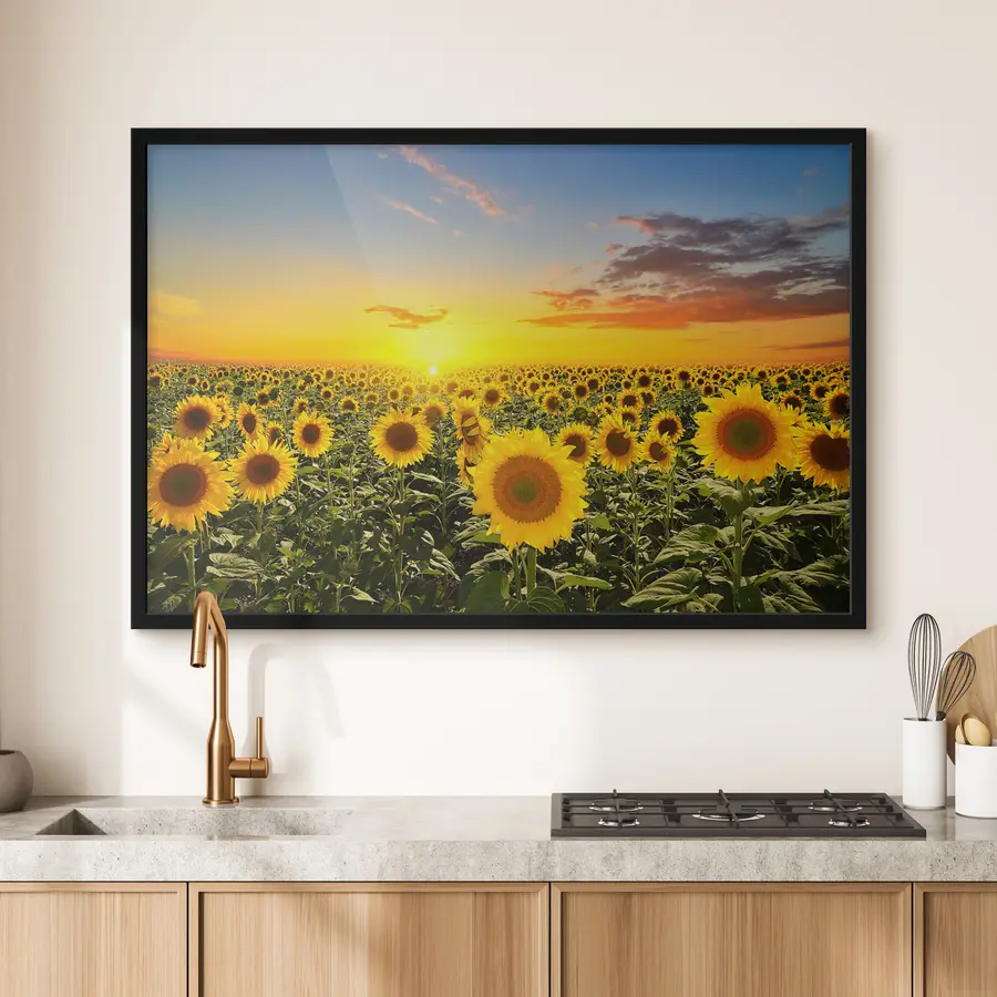 Saulėgrąžos, besimaudančios auksinėje saulės šviesoje