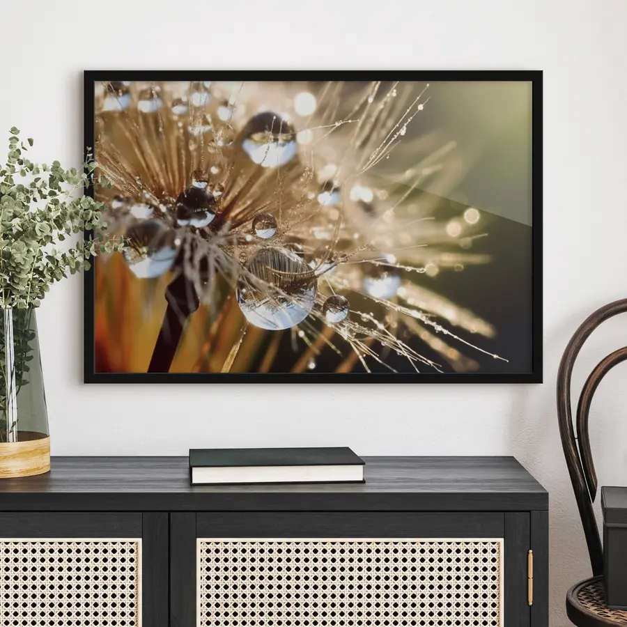 Ryškiai šviečiantys subtilūs gamtos vandens lašeliai