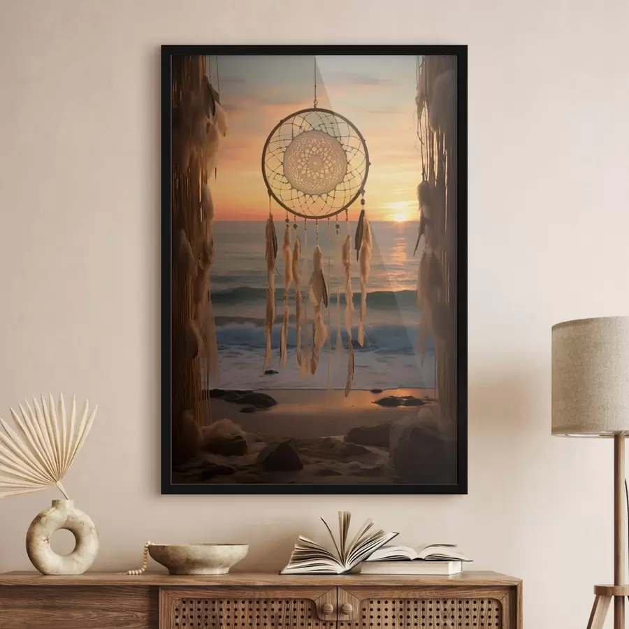 Bareljefo imitacija: šėlstantis vandenynas su valtimis ir saule