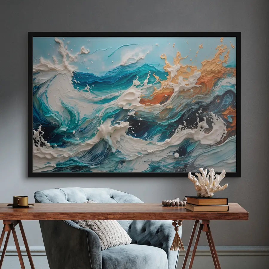 Jūros bangos akrilo tapybos stiliumi