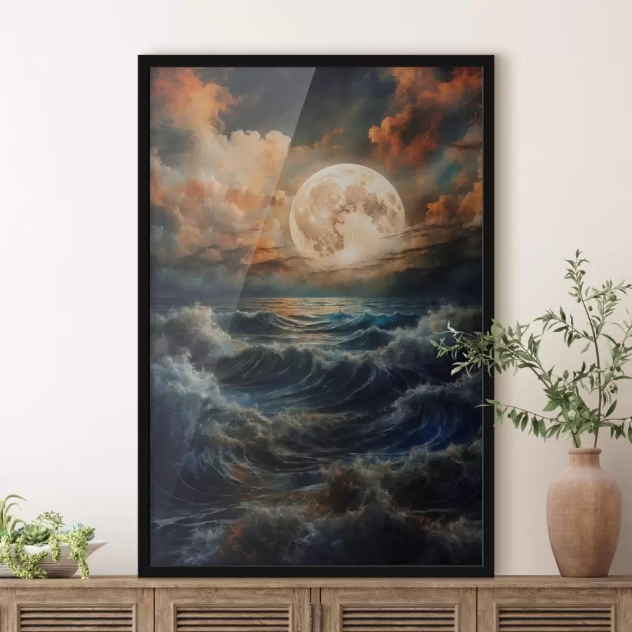 Didingas mėnulis virš audringos jūros