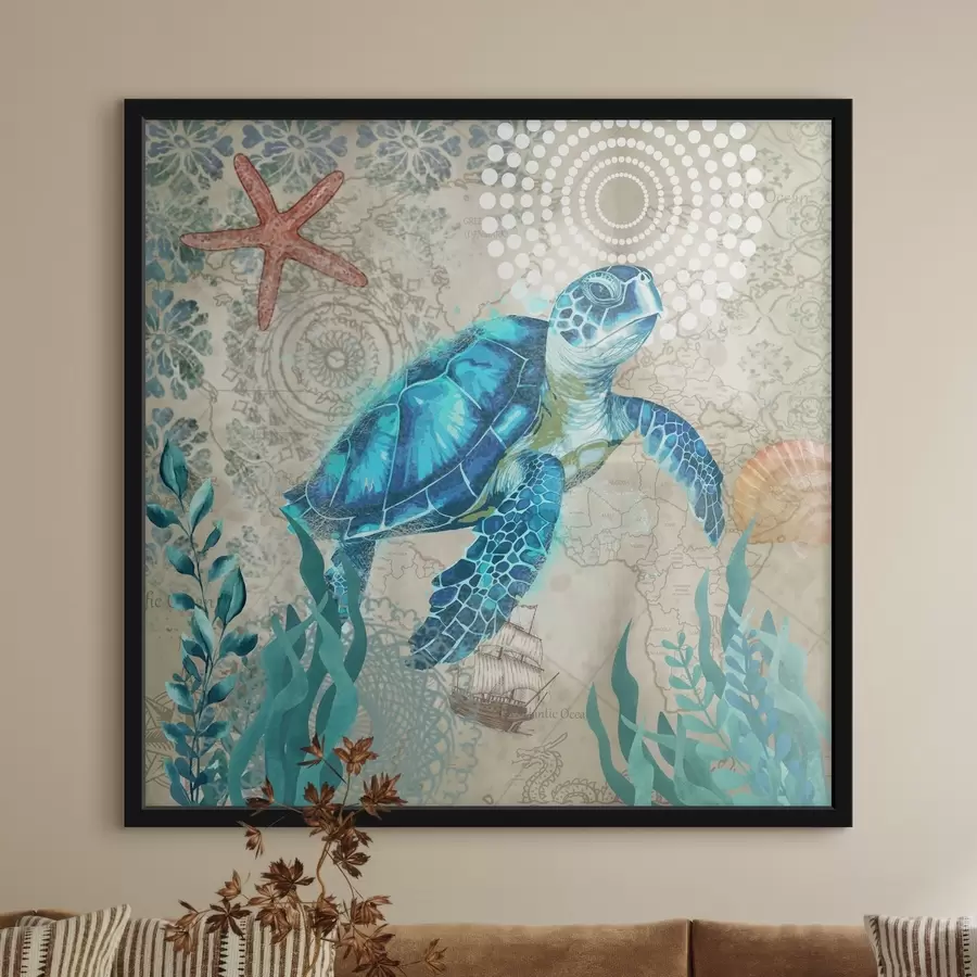 Mėlynasis jūrų vėžlys, plaukiojantis vandenyne