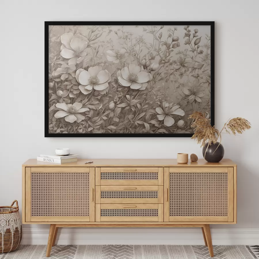 Gėlės ir lapai sepijos spalvos
