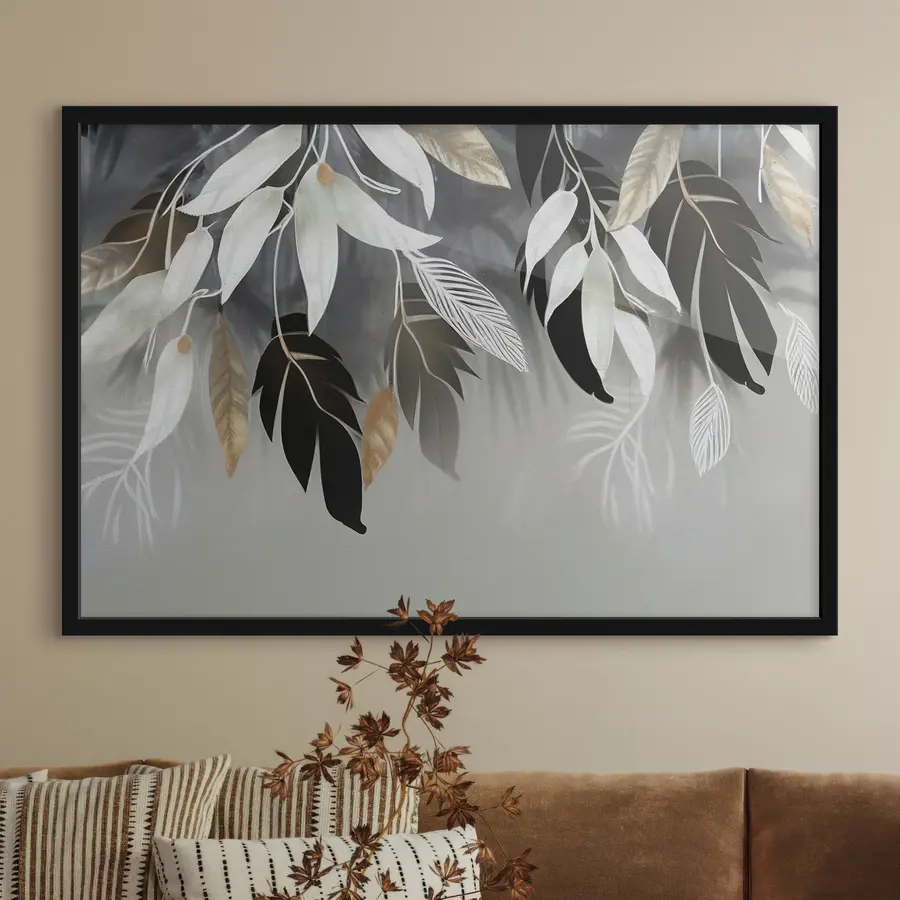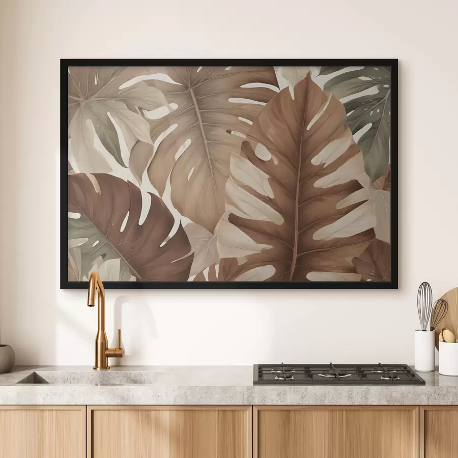 Dideli atogrąžų lapai tapybos stiliumi