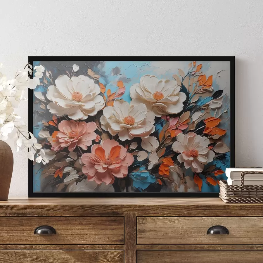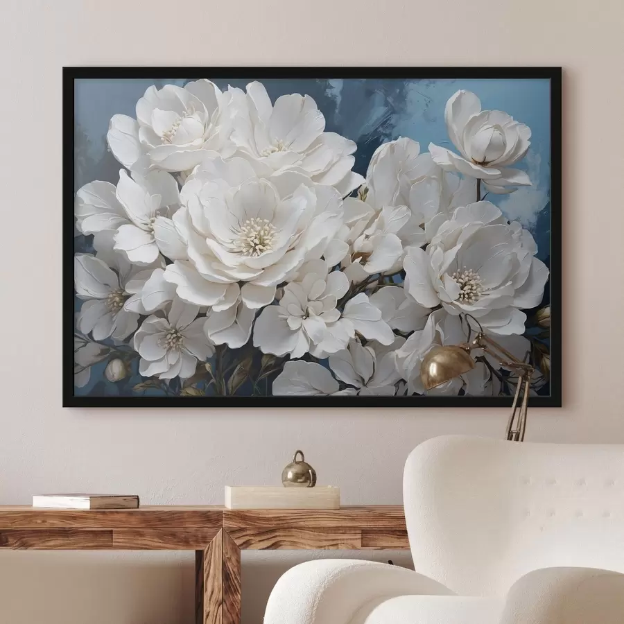 Mėlynos gėlės aliejinės tapybos stiliumi