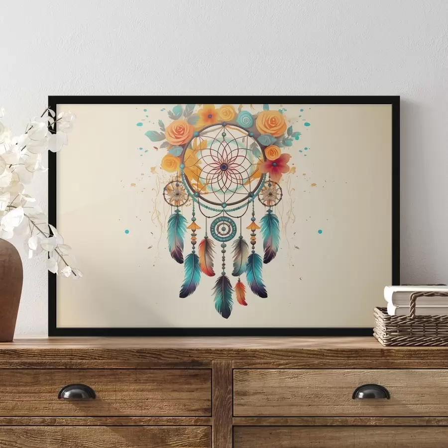 Tapyba aliejiniais dažais balkono su gėlėmis imitacija, su vaizdu į jūrą, namus pakrantėje, saulėtą dieną, mėlynas dangus
